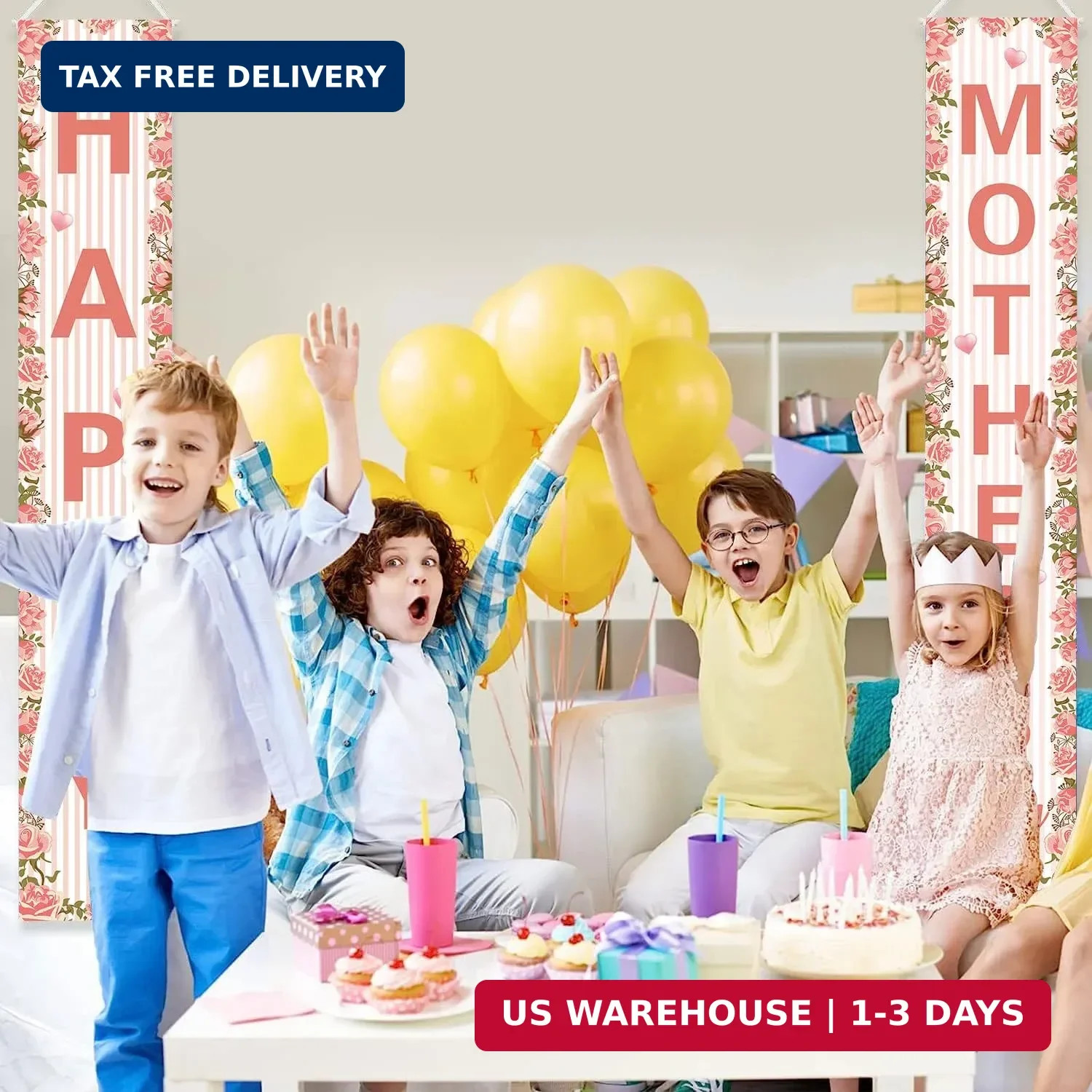 Happy Mother's Day Decorations Porch Banner, Pink Rose Flower Mothers Day Love H