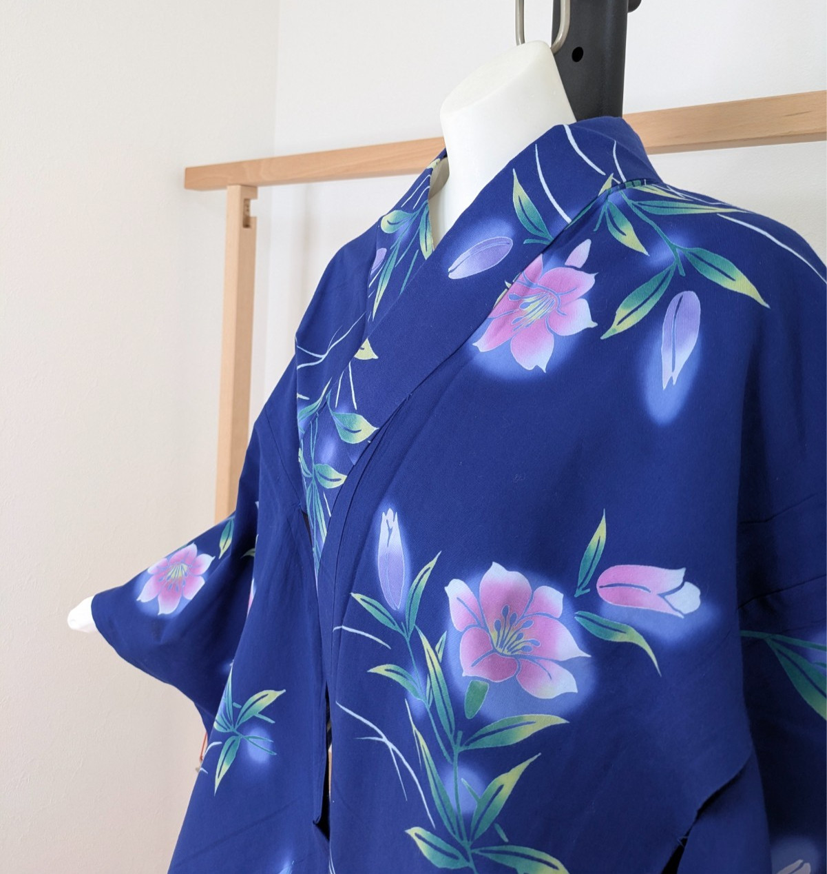 Authentic Japanese Yukata Cotton Kimono Robe Blue Pink Floral Summer Loungewear