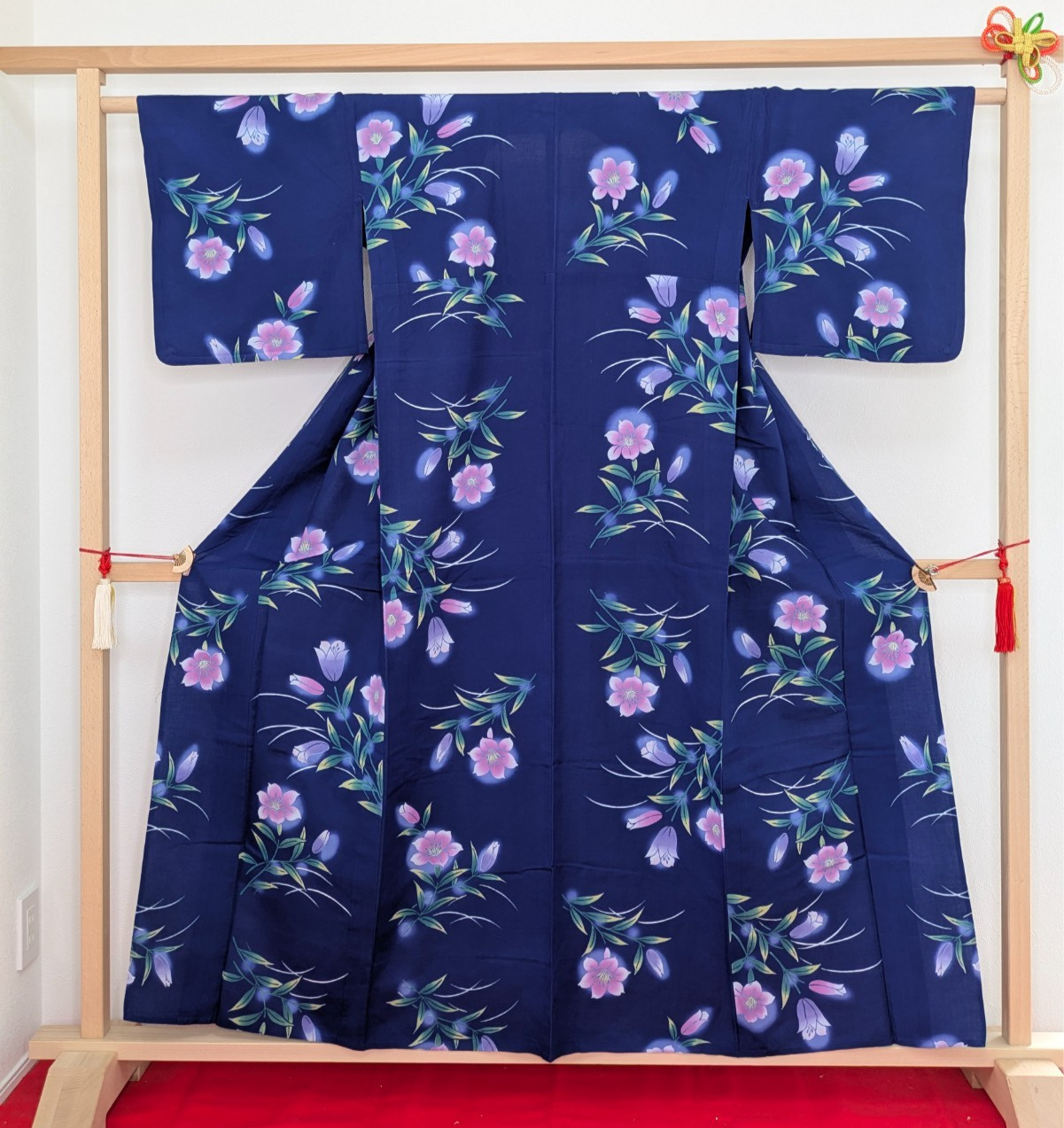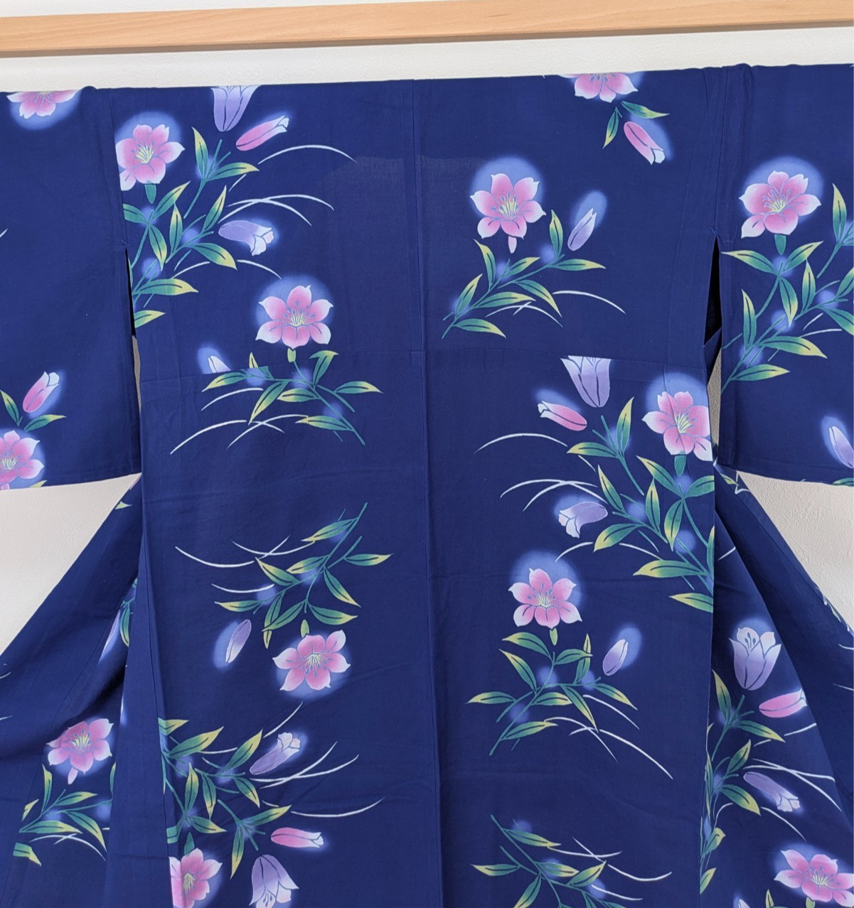 как выглядит Authentic Japanese Yukata Cotton Kimono Robe Blue Pink Floral Summer Loungewear фото