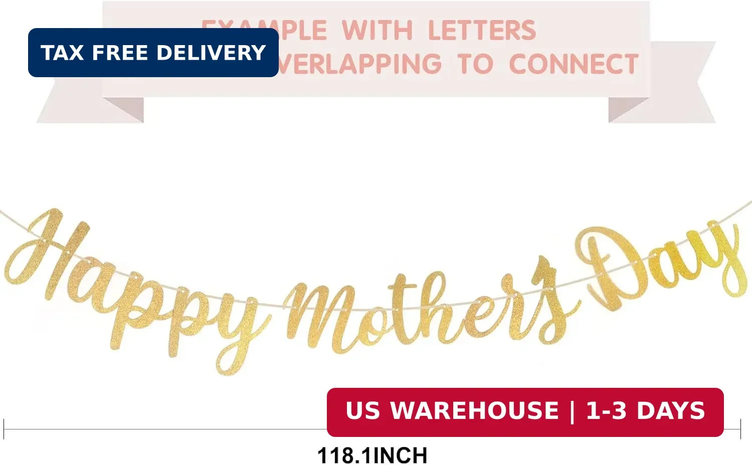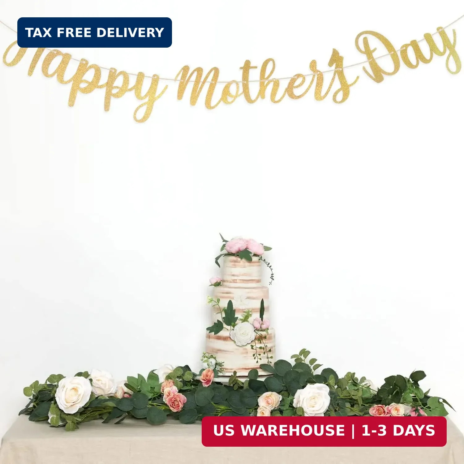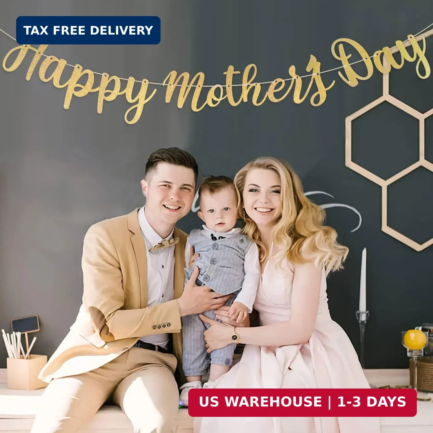 Happy Mother's Day Decorations Banner - NO DIY - Gold Glitter Mothers Day Party
