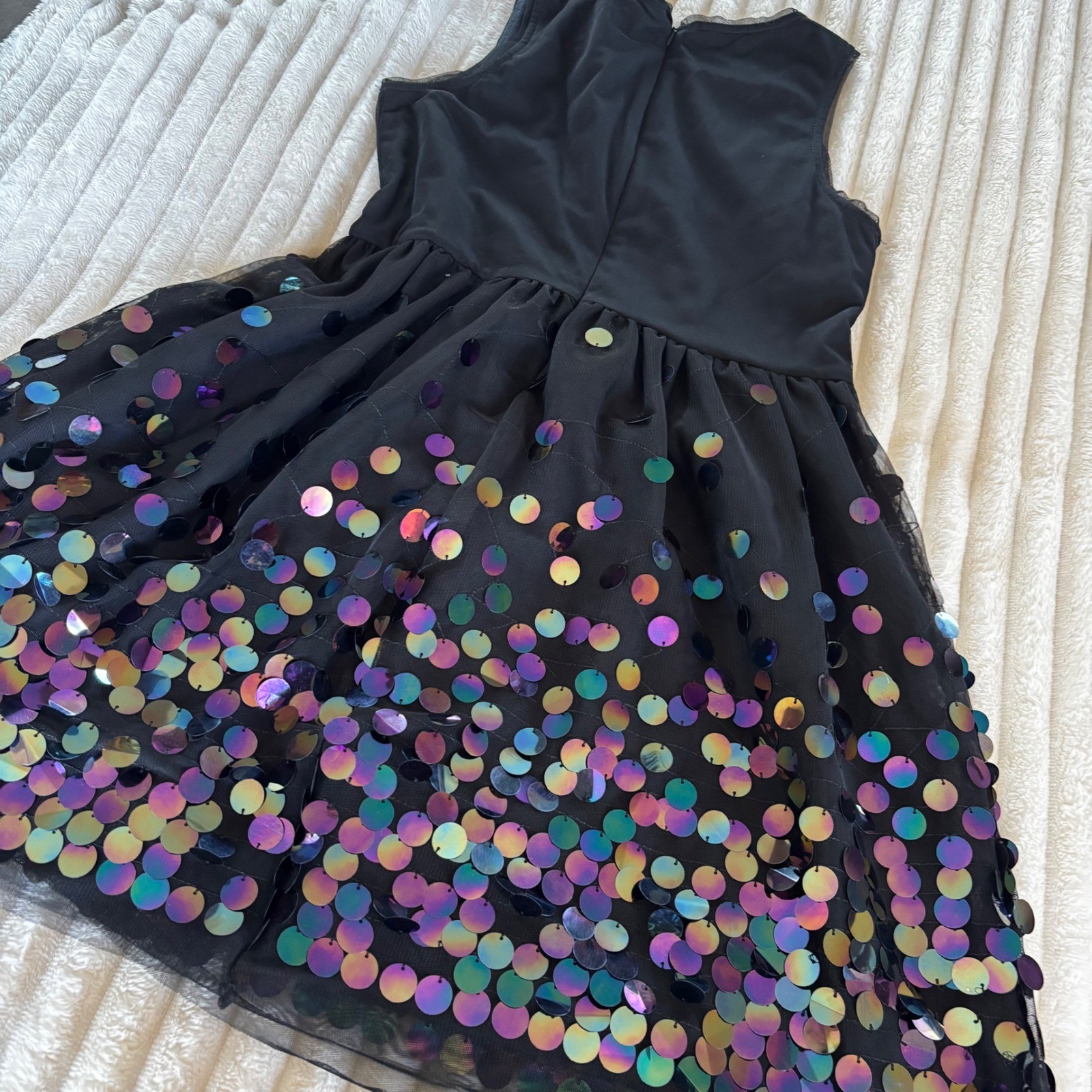 как выглядит Girls Black Party Dress Iridescent Sequin Sleeveless Sparkly holiday sz14 фото