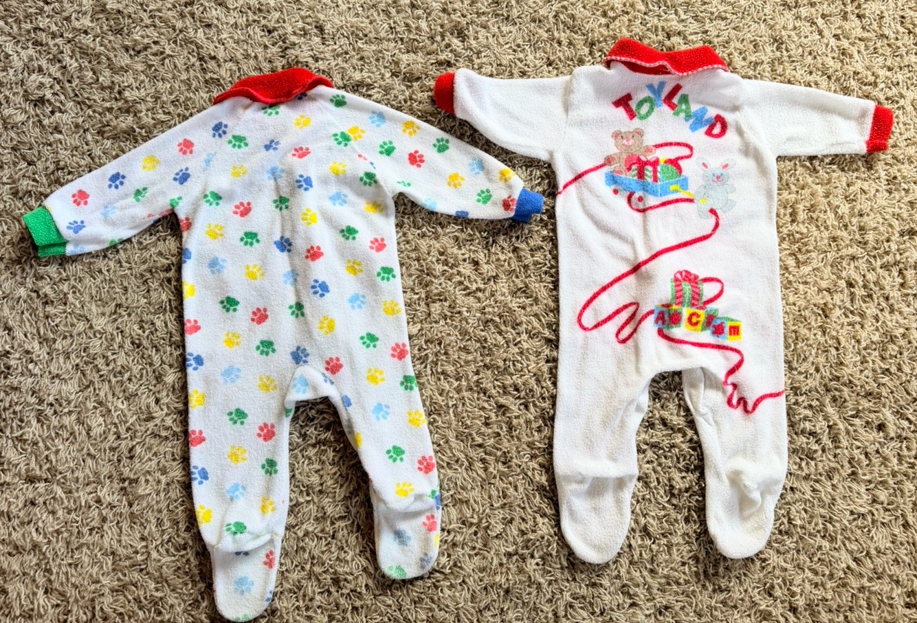 Vintage 3Months Terry Cloth Footed Sleepers Dog Paws 1st Christmas Carters