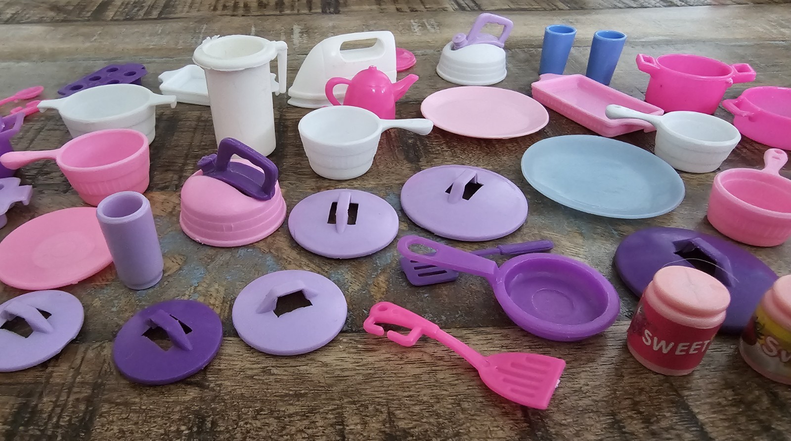 как выглядит Vtg Barbie Play Doll Pink Purple Dish Dream Kitchen Accessories Large Lot Set фото