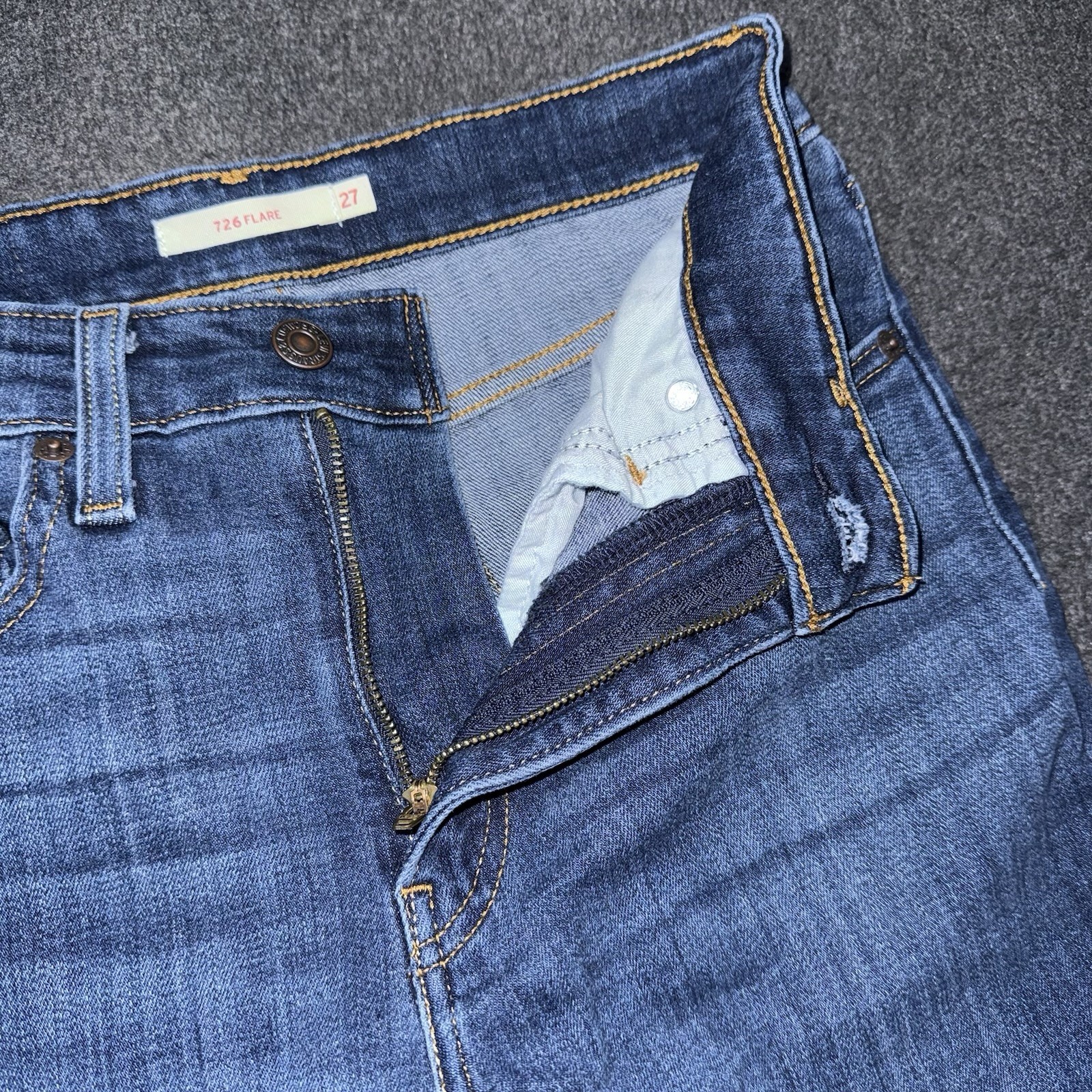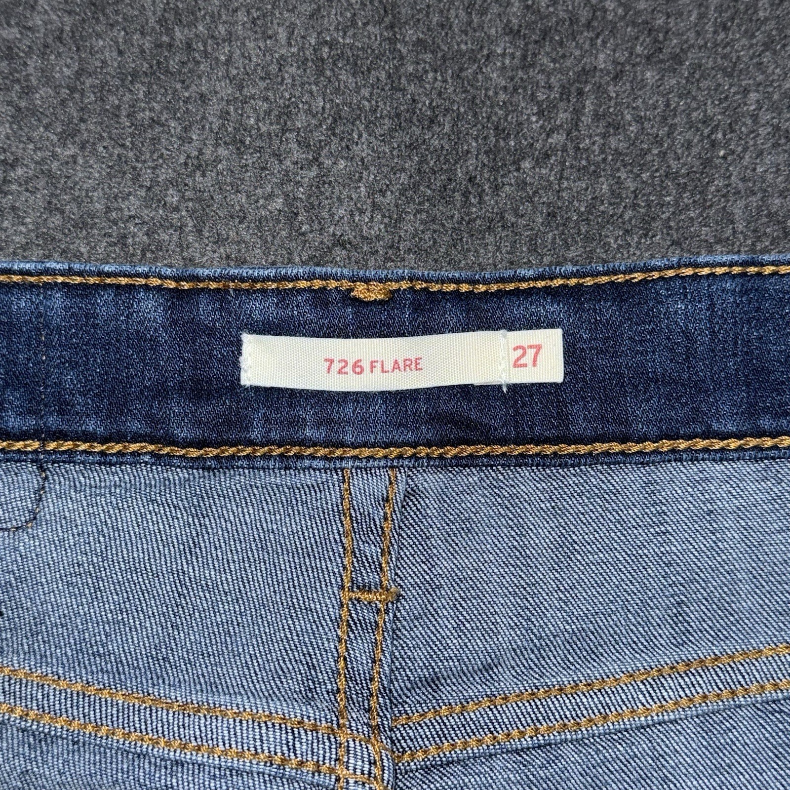 Levis 726 High Rise Flare Jeans Womens sz 27 x 30 Dark Blue Wash Stretch Denim