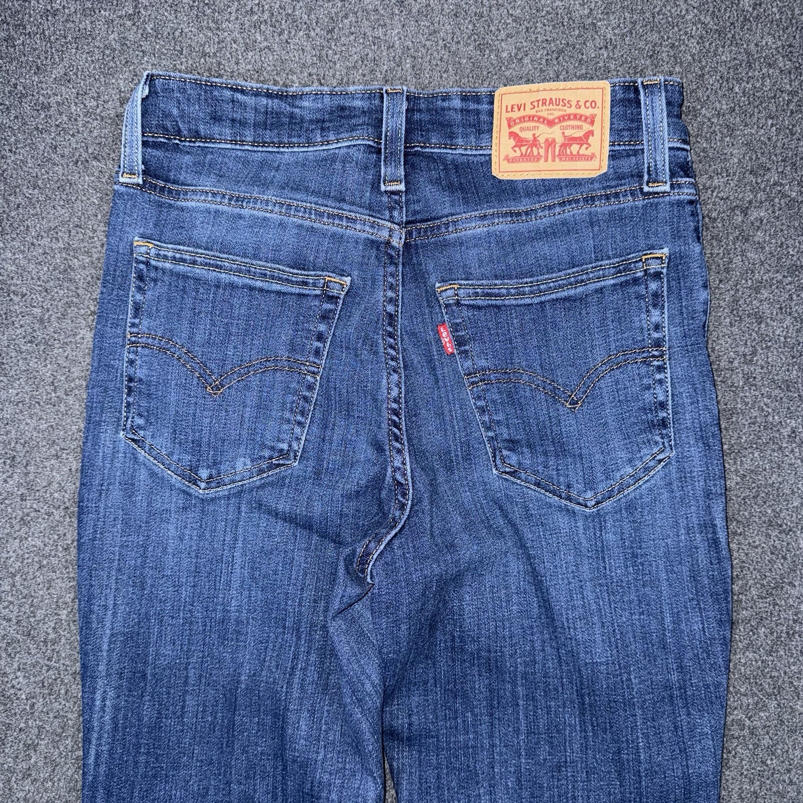 как выглядит Levis 726 High Rise Flare Jeans Womens sz 27 x 30 Dark Blue Wash Stretch Denim фото