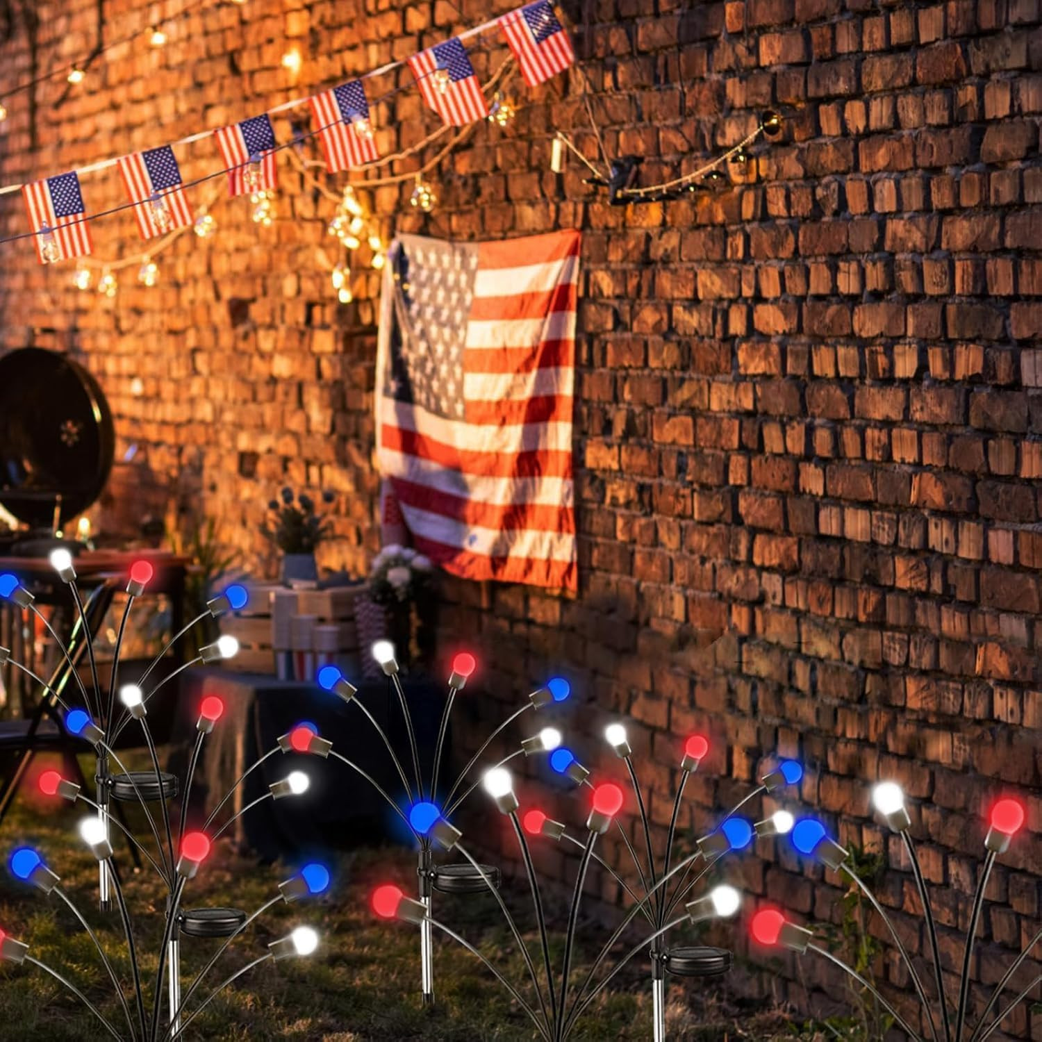 4Th of July Decorations Outdoor, 8 Pack Red White and Blue Solar Garden Lights 4