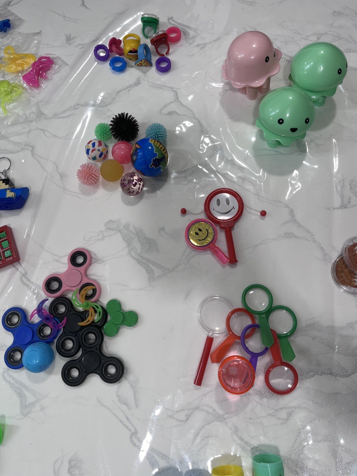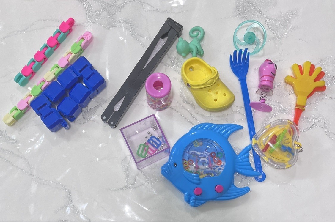 Assorted Prizes Fidget Spinners Pop-It Bracelets Rings Cars More 200 Pieces
