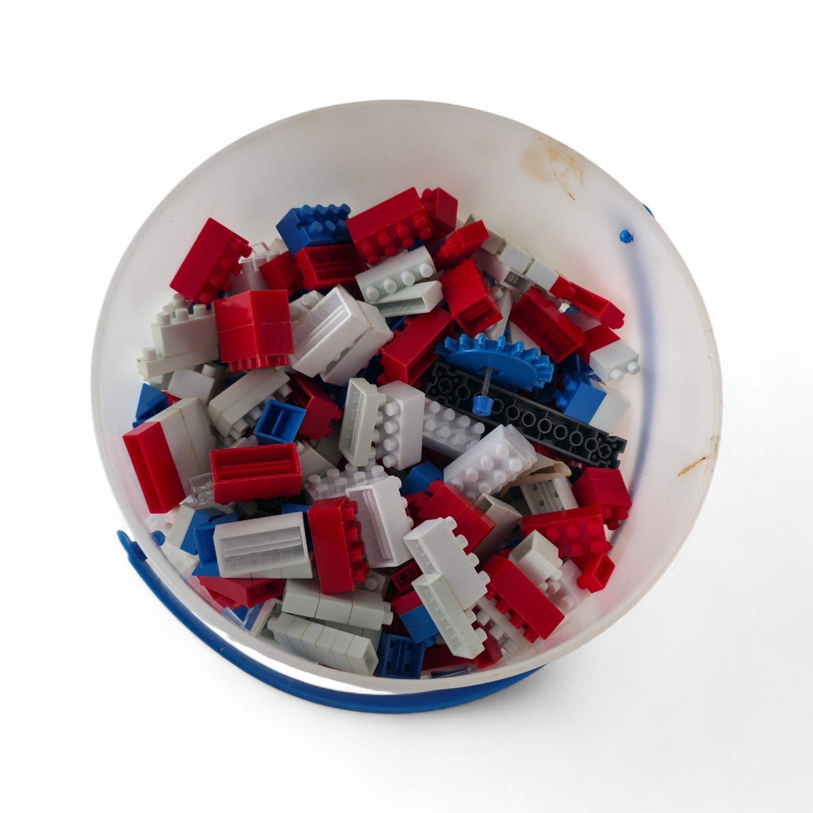 как выглядит Vintage Sears Brix Blox 4.5lb Bulk Set Manual Storage Bucket фото
