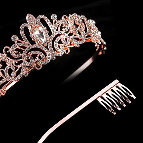 Crystal Tiara Crowns For Women Girls Princess Elegant 1Pcs Rose Gold Crown 1PCS