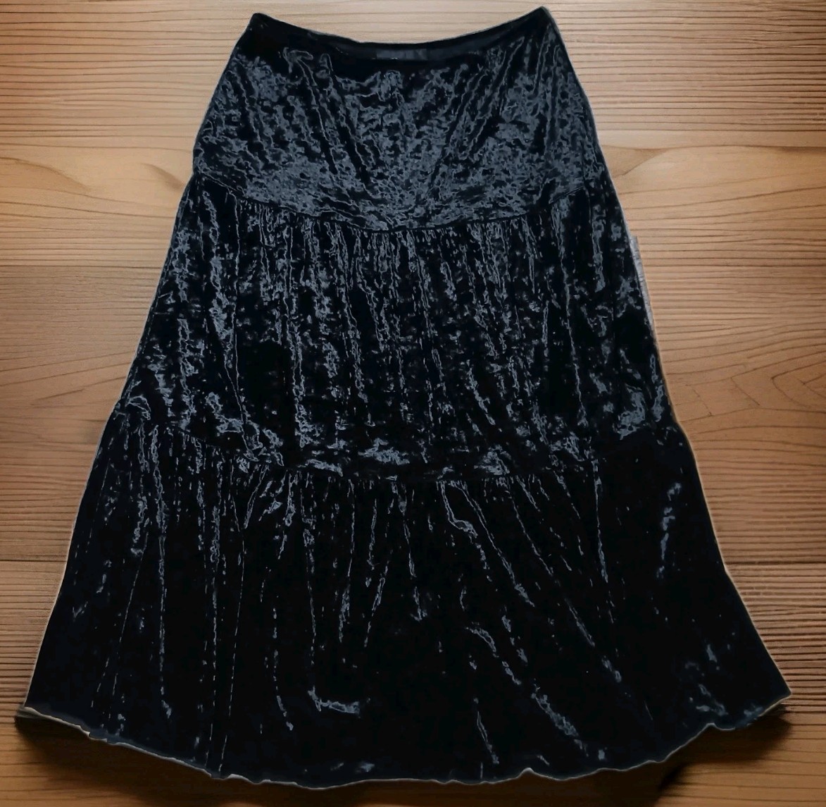 как выглядит Vtg Y2K Black Velvet Tiered Maxi Skirt S Whimsigoth Boho Fairy Grunge Witchy фото