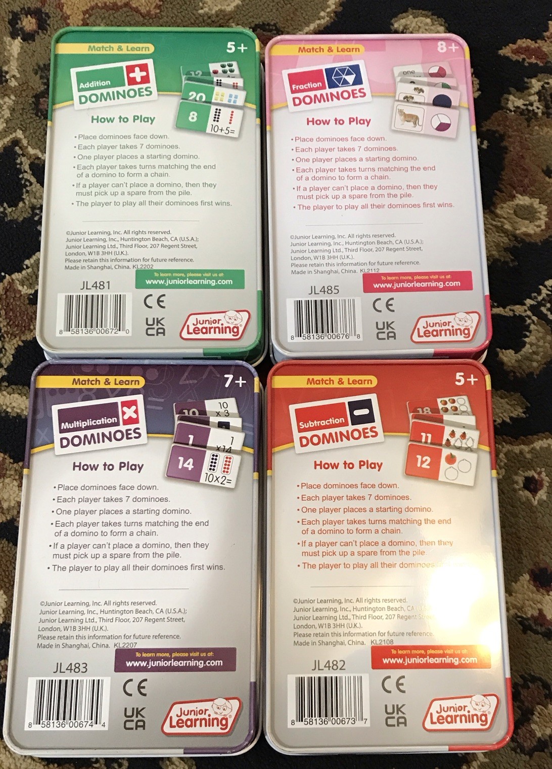 Junior Learning Dominoes Match Learn Lot Of 4- Addition Fraction Multiplic