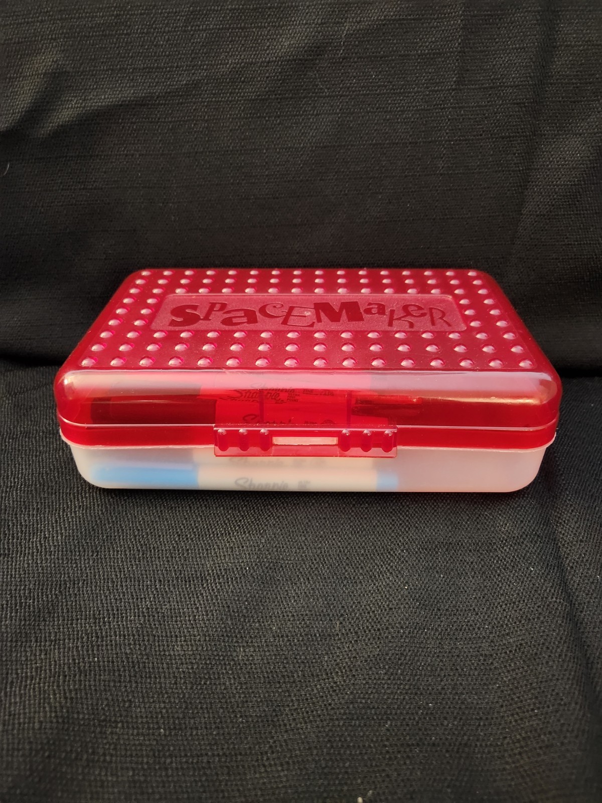 Spacemaker Red Frosted Clear Pencil Box Plastic Storage Case Vtg 90s USA