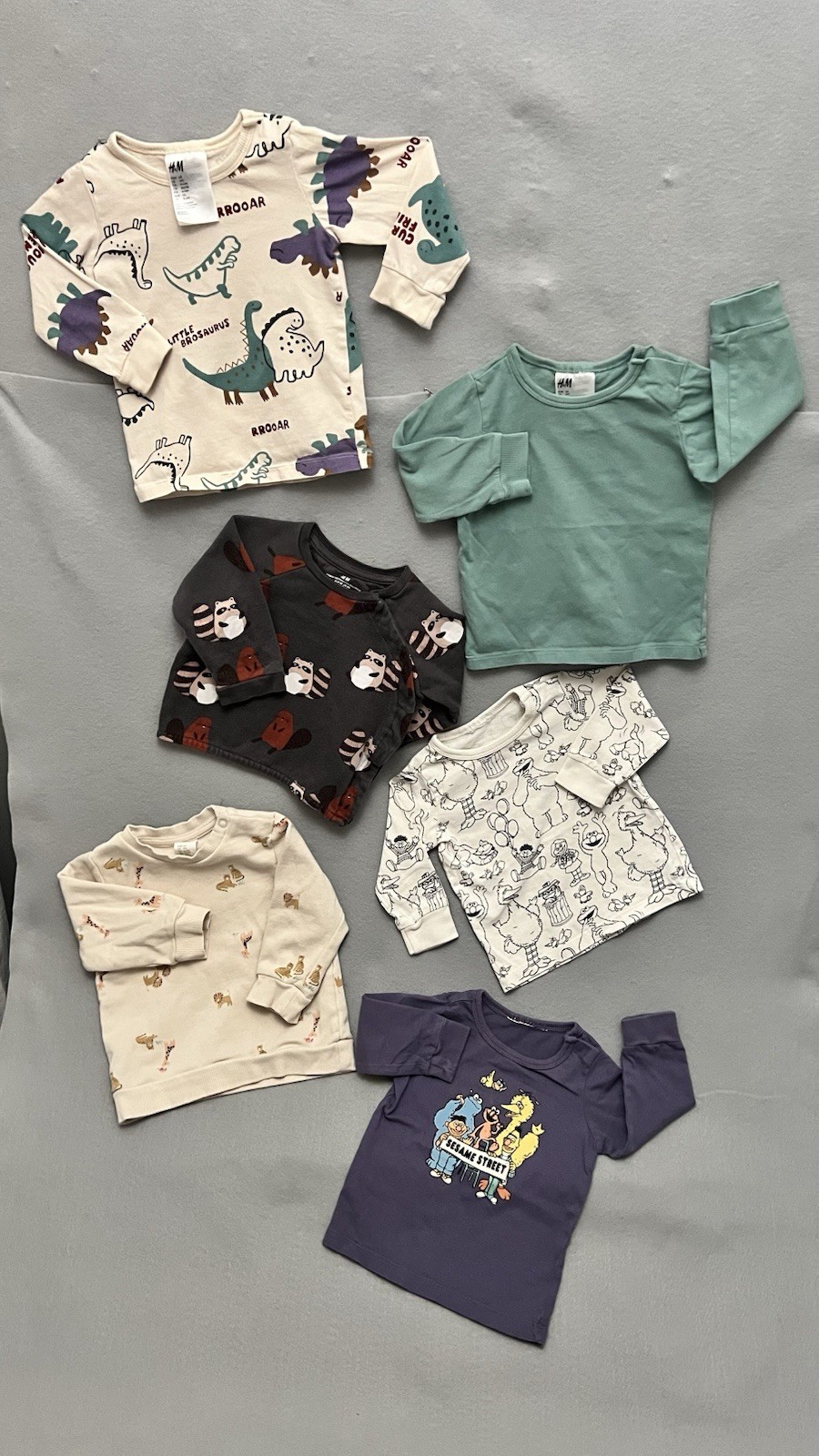 H M Baby Clothes for Boys, Lot 6M Bundle Tops Pants Dinosaur Sesame