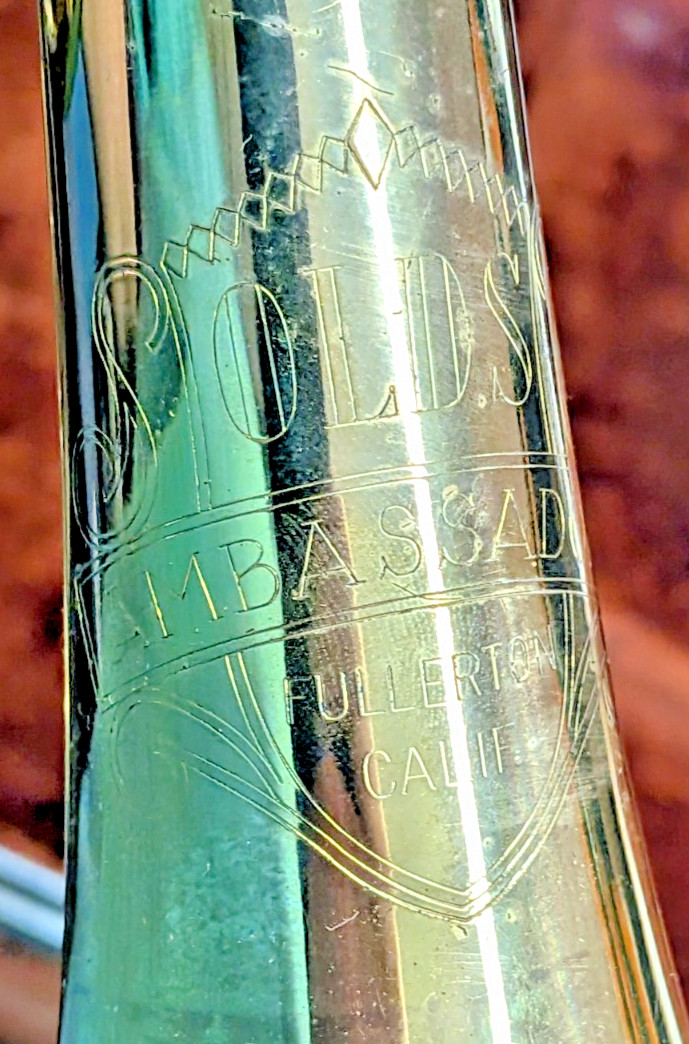 как выглядит F.E. Olds Ambassador brass cornet 15" student vintage 1964 SN 449004 with case фото