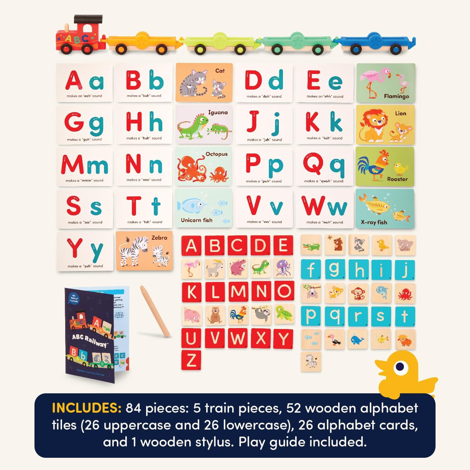 Education Wooden Alphabet Train Set ABC Letter Train Toy with 84 Pieces for To