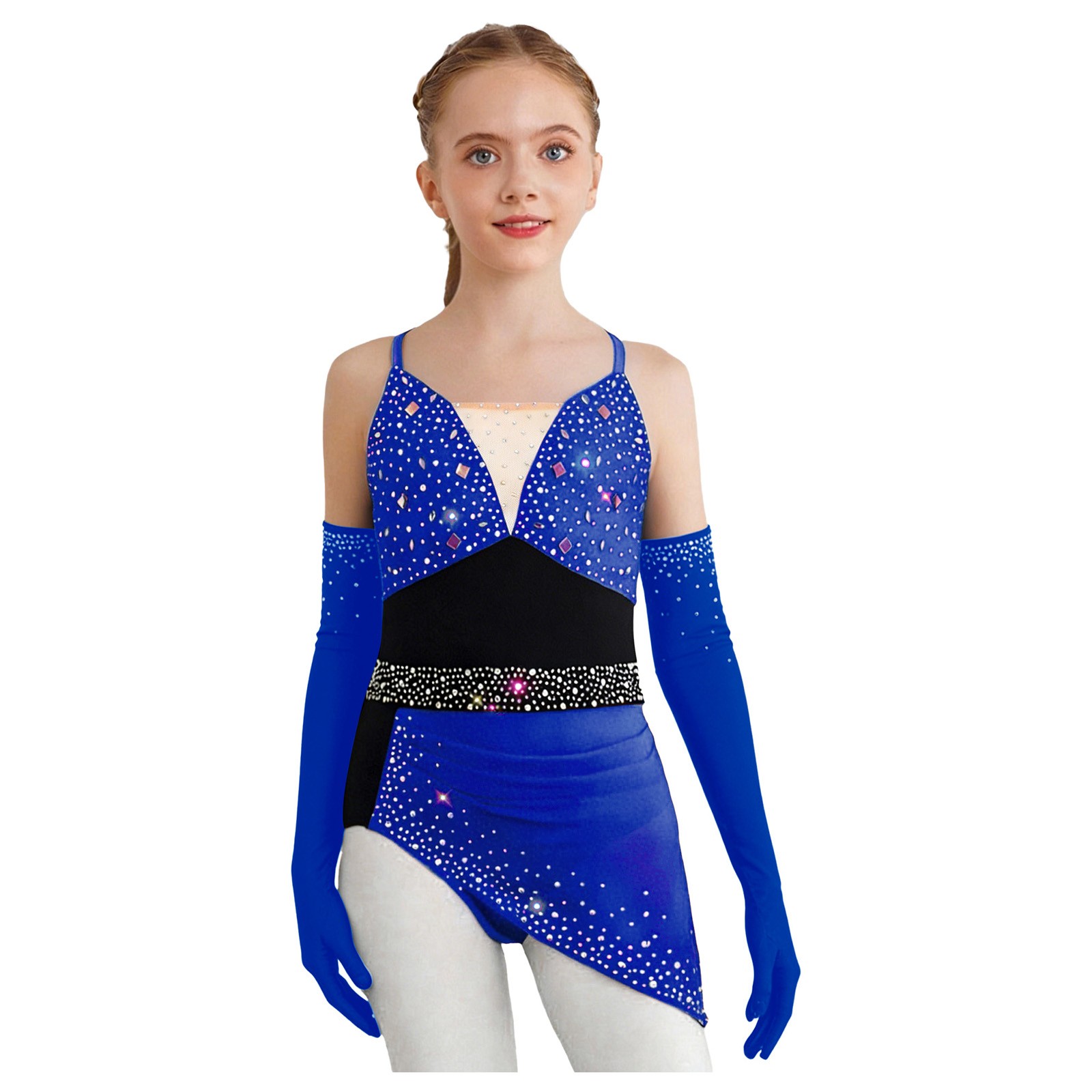 Girls Dancewear Latin Outfits Tango Dress With Gloves Skirted Salsa Ballroom