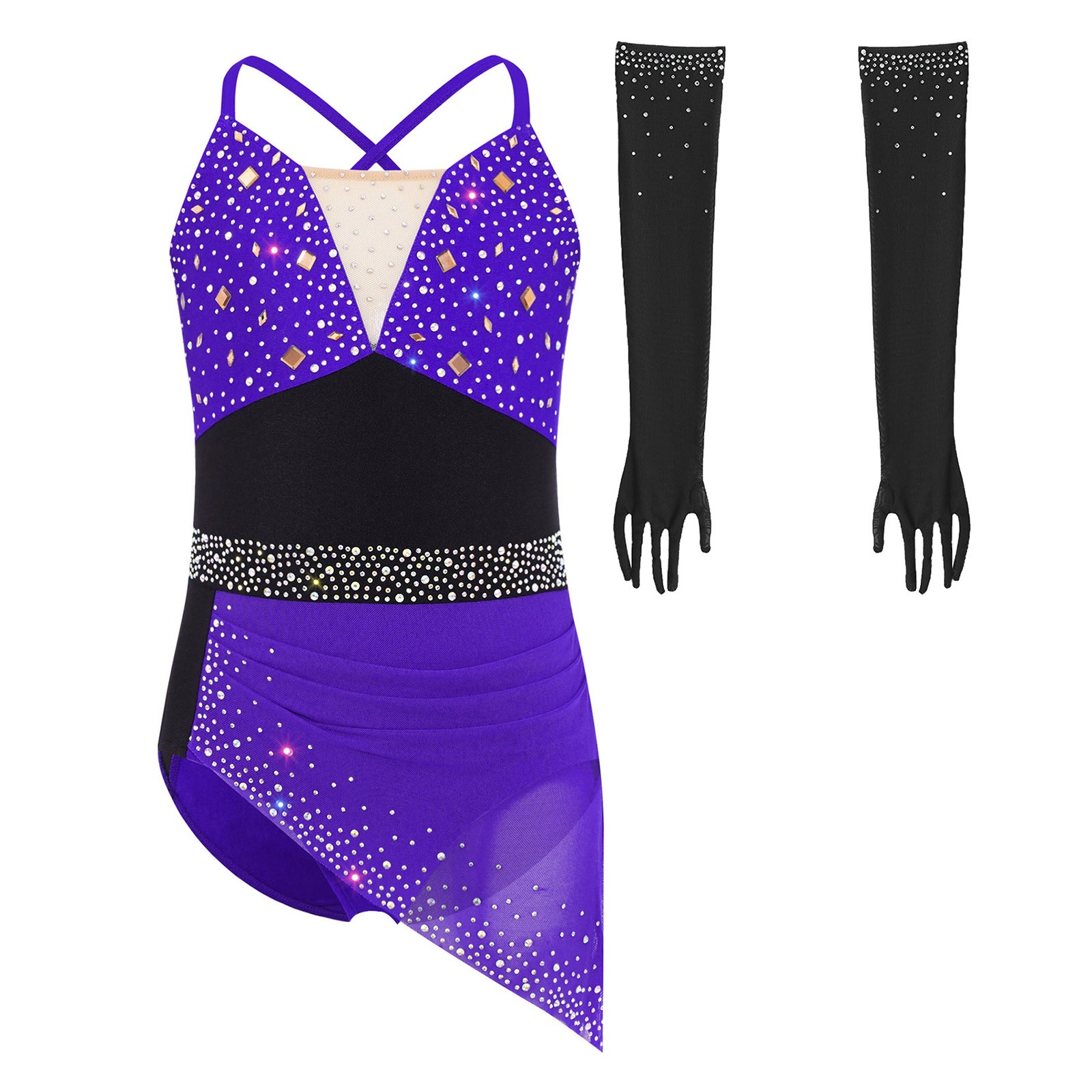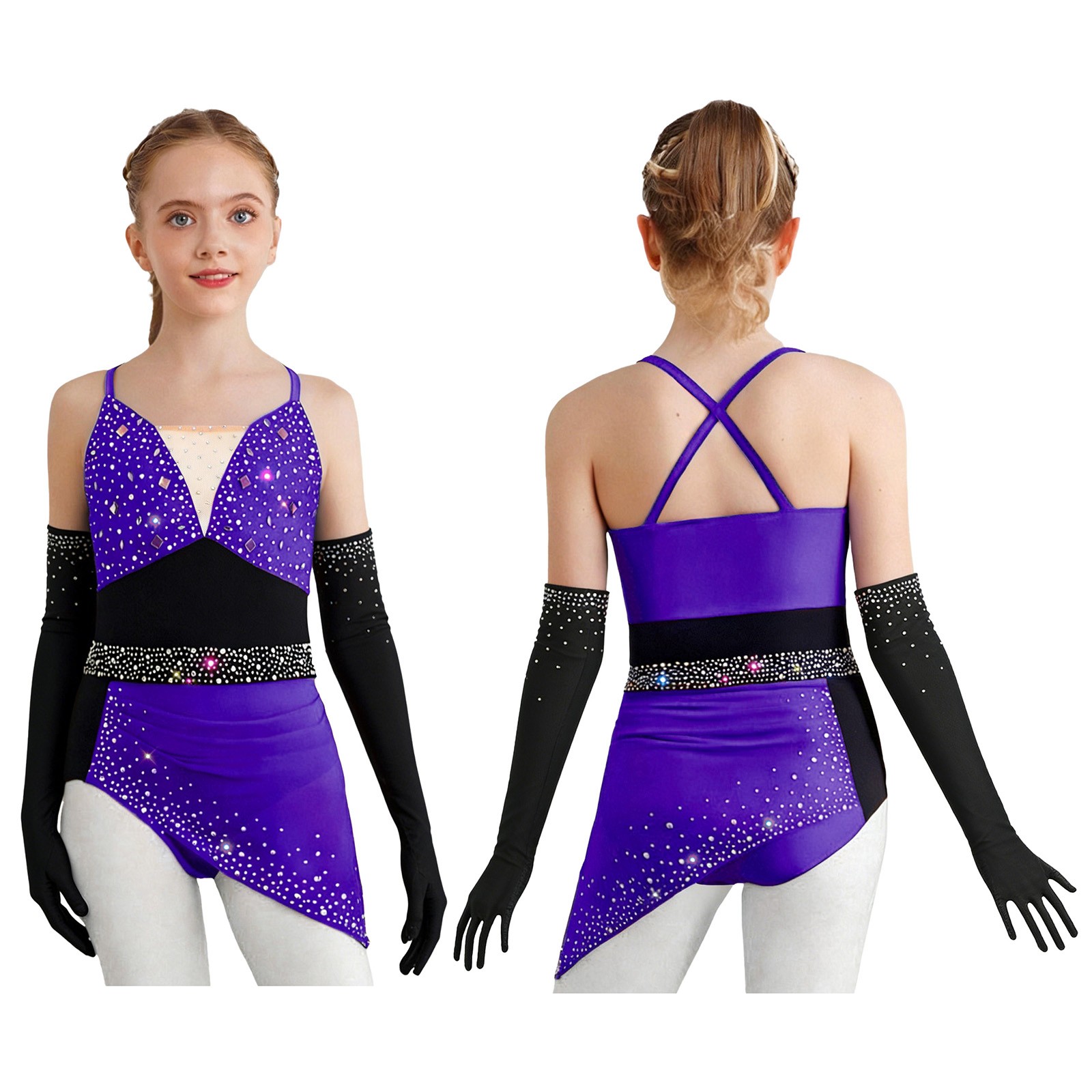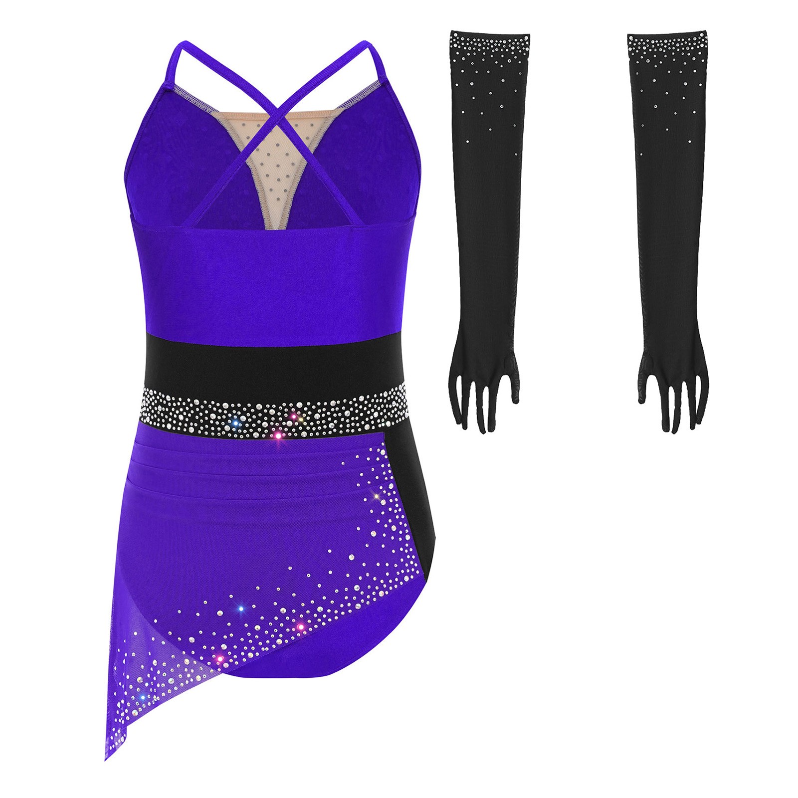 Girls Dancewear Latin Outfits Tango Dress With Gloves Skirted Salsa Ballroom