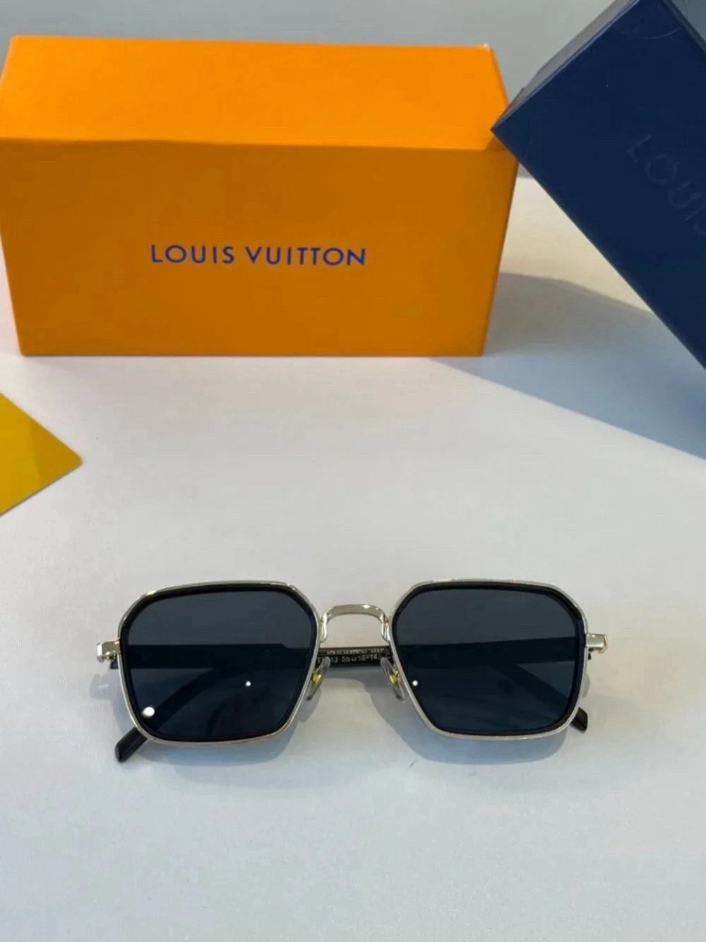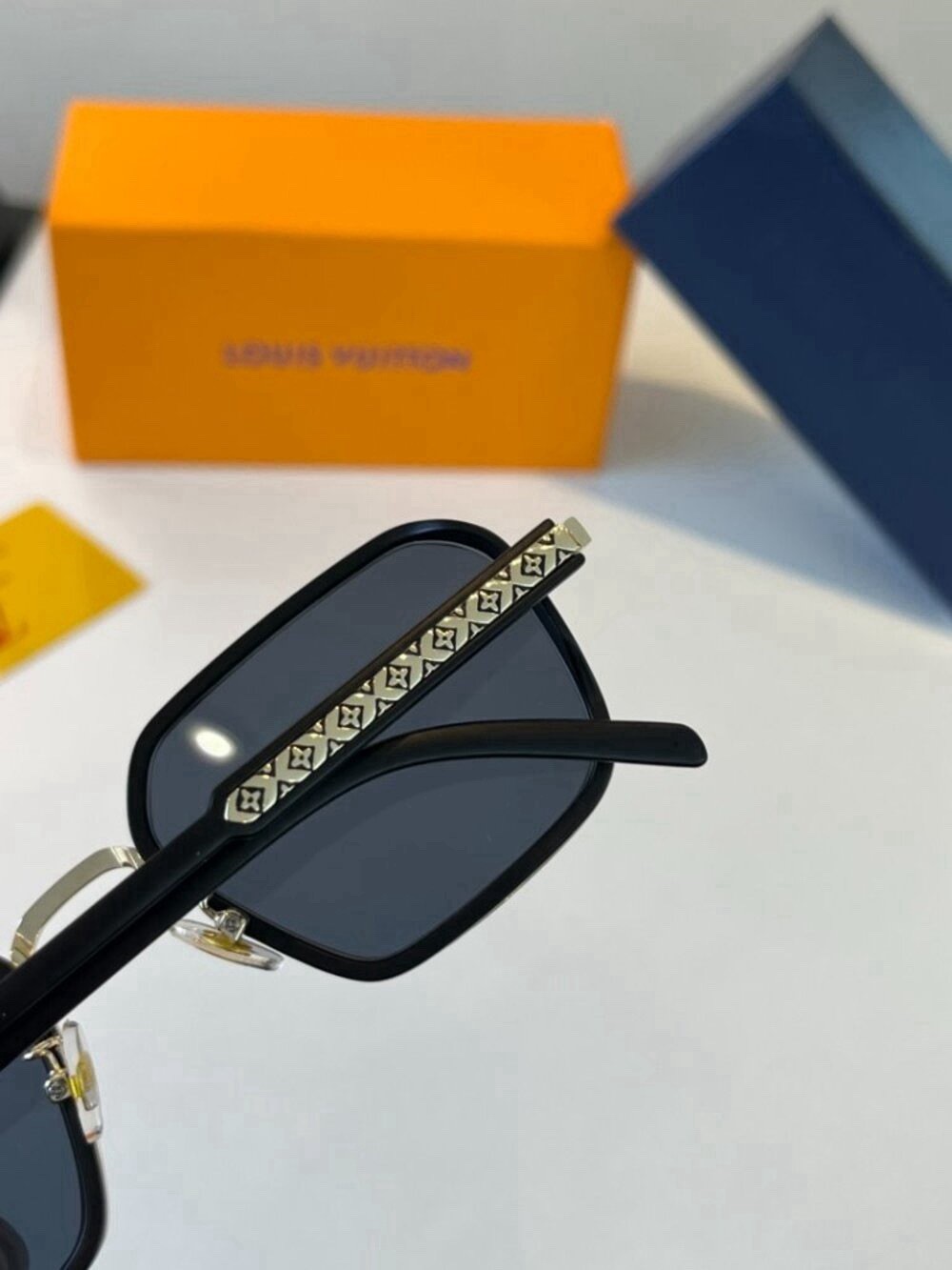 как выглядит Louis Vuitton Square Black Sunglasses Gold Trim Tinted Lens for Men фото