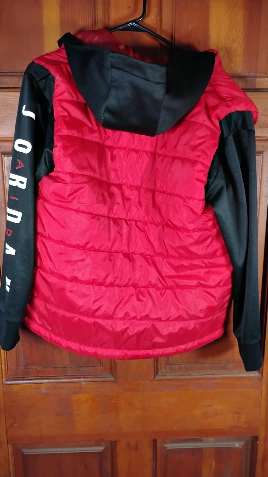 Air Jordan M Red Quilted Puffer Jacket Coat Full Zip Hooded Youth Large 12-13