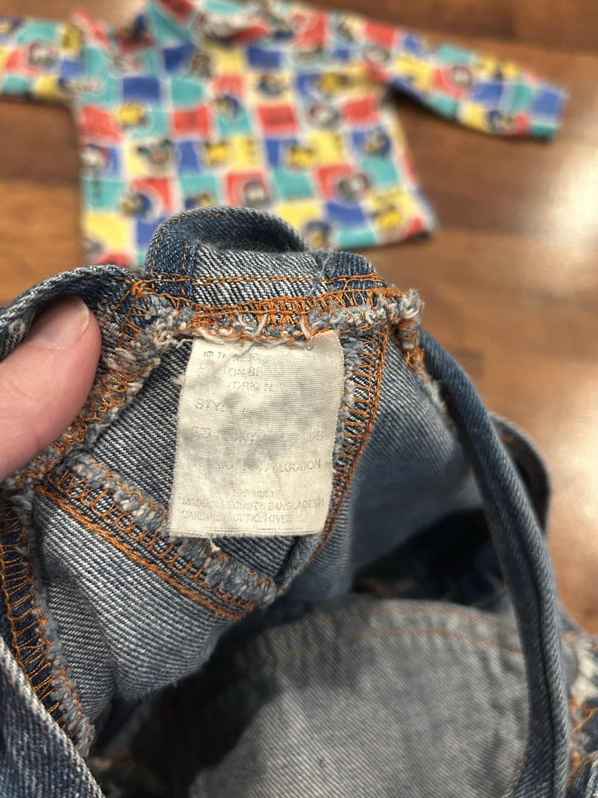 VTG Disney Babies Mickey Mouse Football Overalls and Shirt Size 6/9 Months