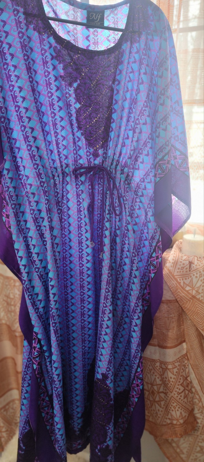 NF Purple African Print Kaftan Dress with Drawstring Waist One Size Women