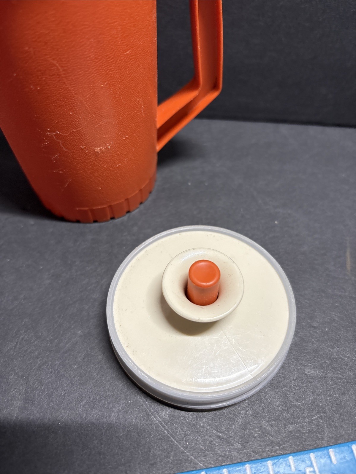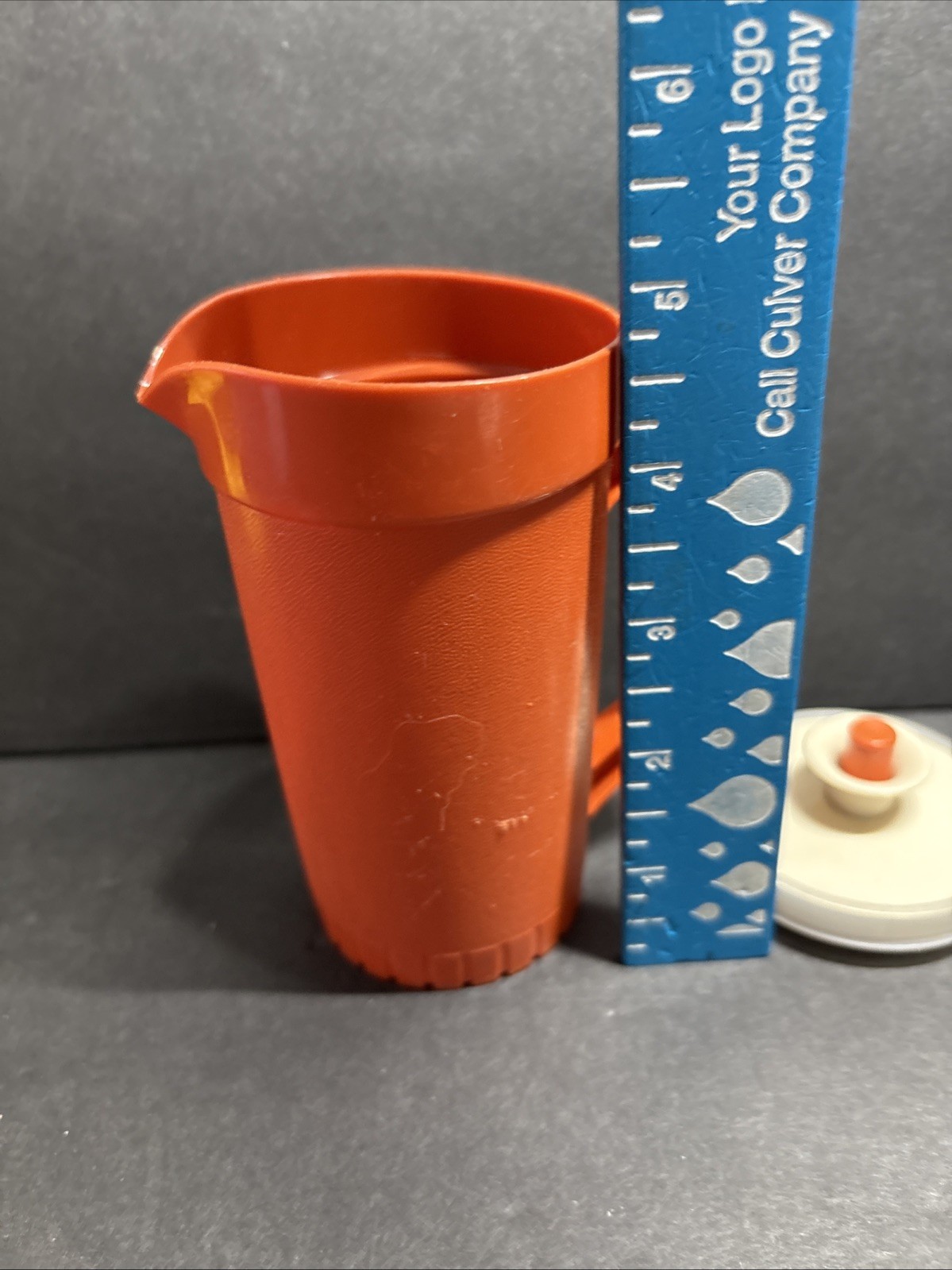 как выглядит Vintage Tupperware Toys Tuppertoys Mini Pitcher 1399 5" Orange Push Button Lid фото