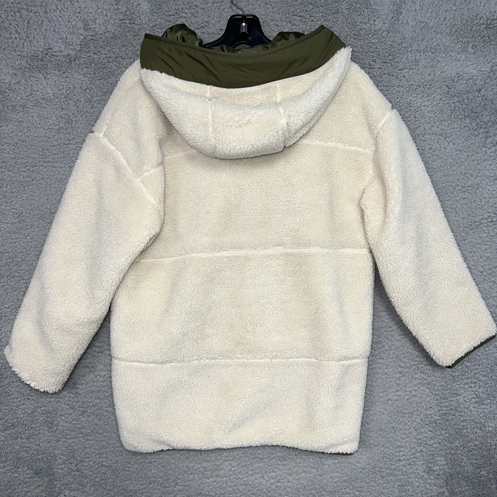 как выглядит Gap Kids Sherpa Jacket Youth Size XL Birch Cream Green Lining Hooded Coat фото