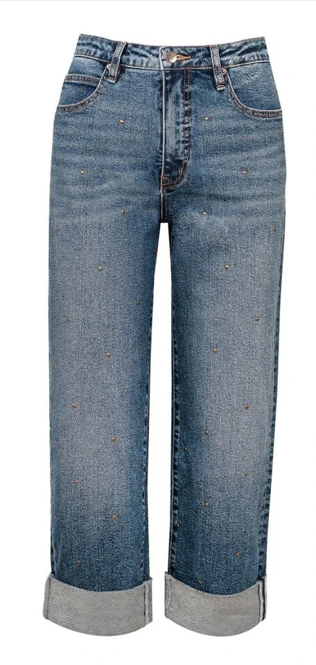 как выглядит Jessica Simpson Studded Zinnia Wide Leg Dark Wash Boyfriend Jeans 6 фото