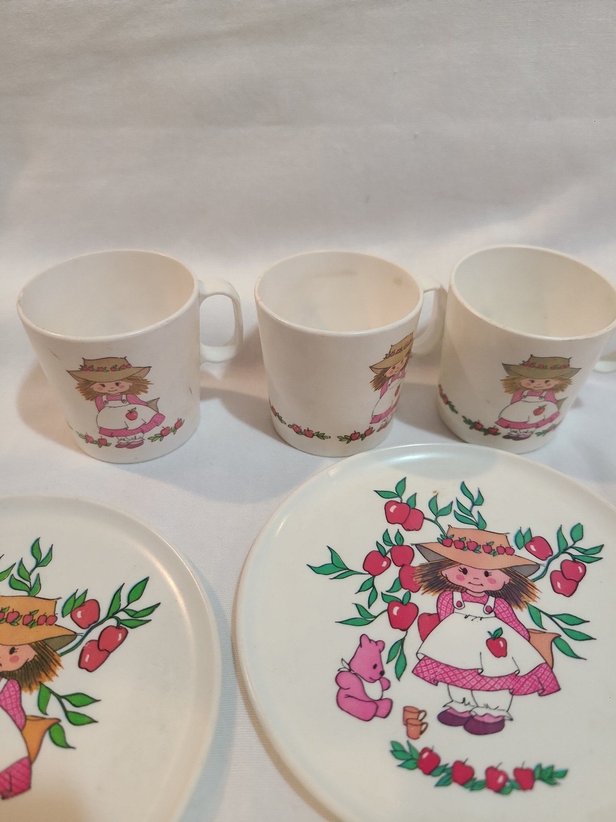как выглядит Vintage Strawberry Shortcake Plastic Tea Set Dishes фото