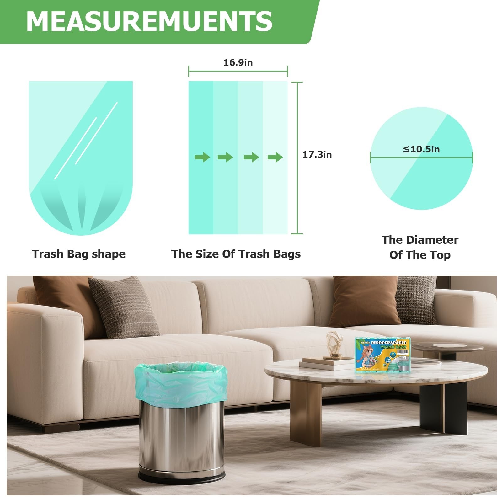 как выглядит 2 Gallon Mini Green Trash Bag - Small Garbage Bags For Bathroom Can 100 Count... фото