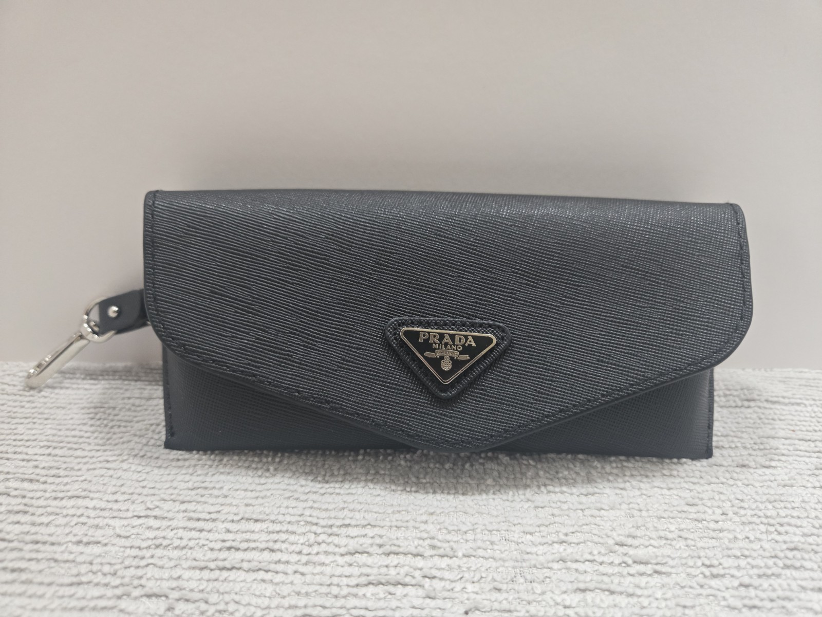 как выглядит Prada PR 17WS Symbole sunglasses slate Grey Prada SaffianoLeatherEyeglassesCase фото