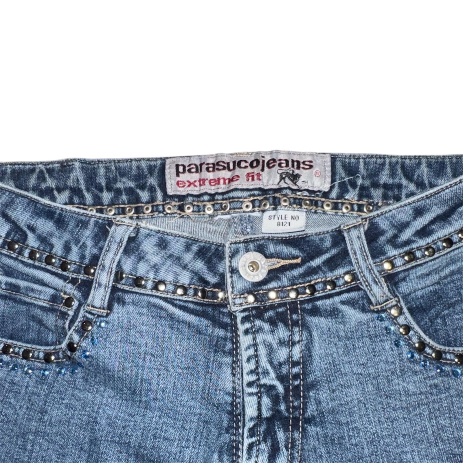 как выглядит Parasuco Low Rise Flare Studded Jeans Sz 26 Vintage Y2K фото