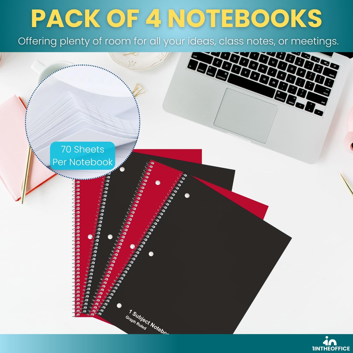 1InTheOffice Graph Paper Notebook, Spiral Paper Notebook, Quad Ruled 8 x 10...
