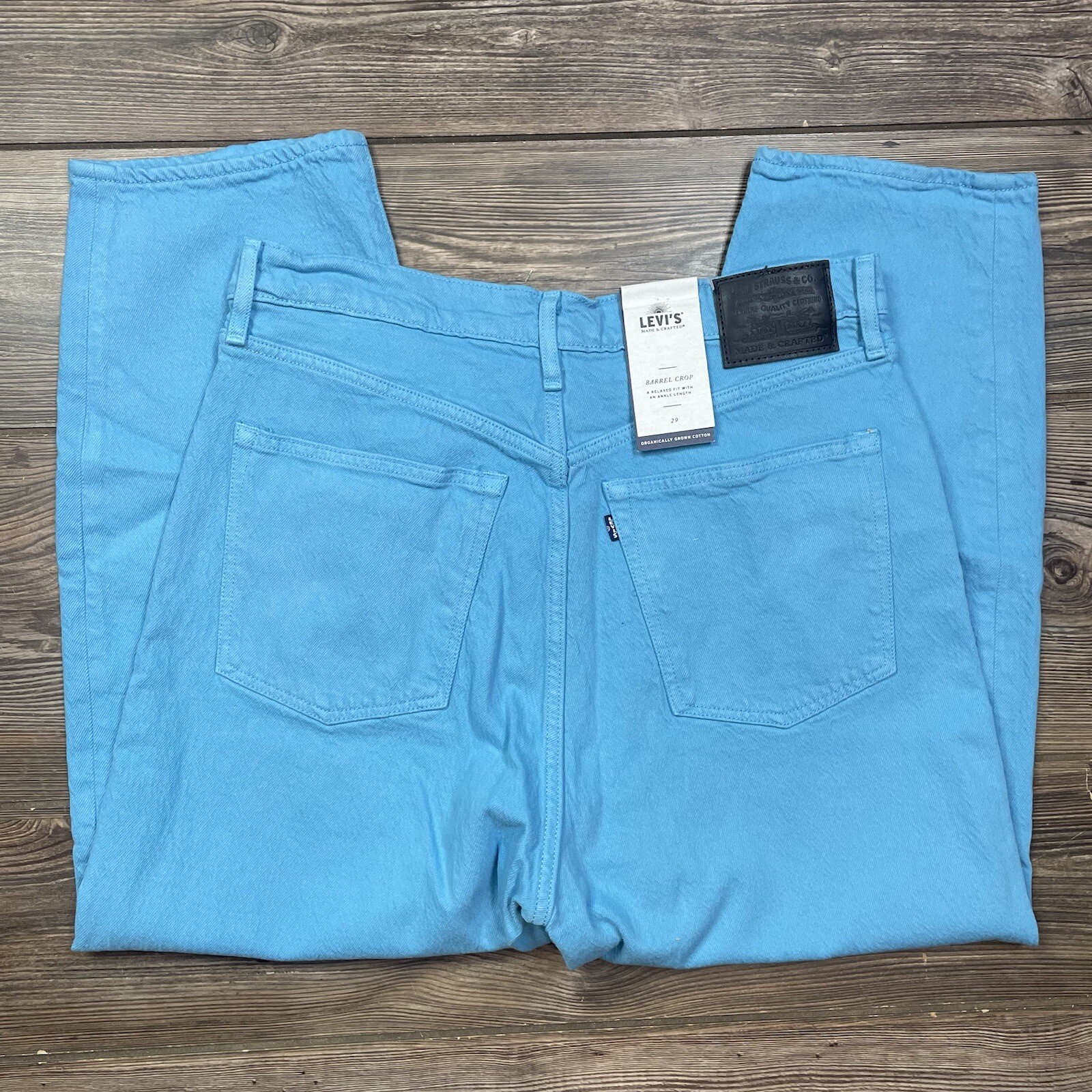как выглядит Levis Made Crafted Women s Barrel Crop Jeans Organic Cotton Teal Size 29 NWT фото