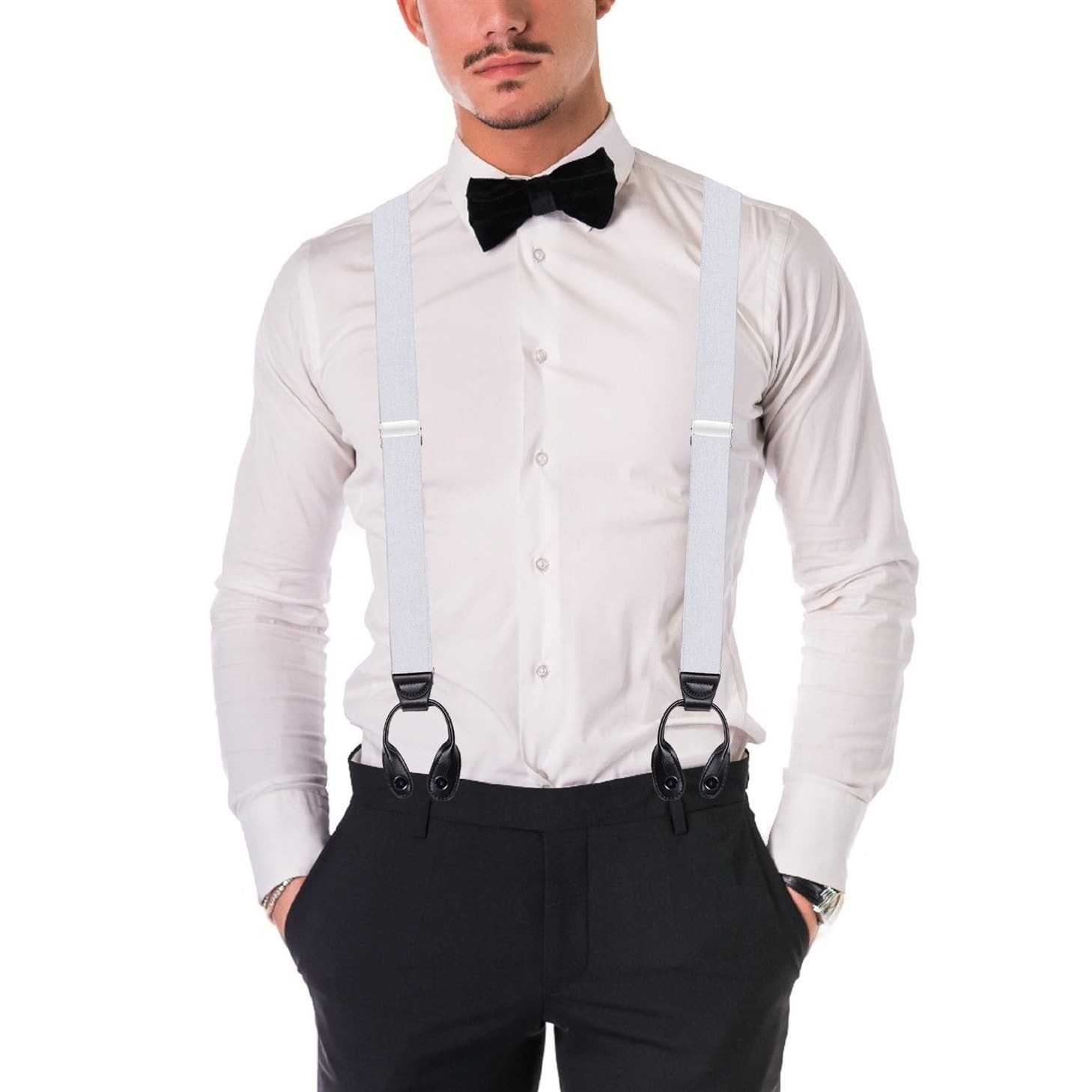 Button End Suspenders for Men - 48 Adjustable Straps 1 1/4 - Y Shape - 5113...