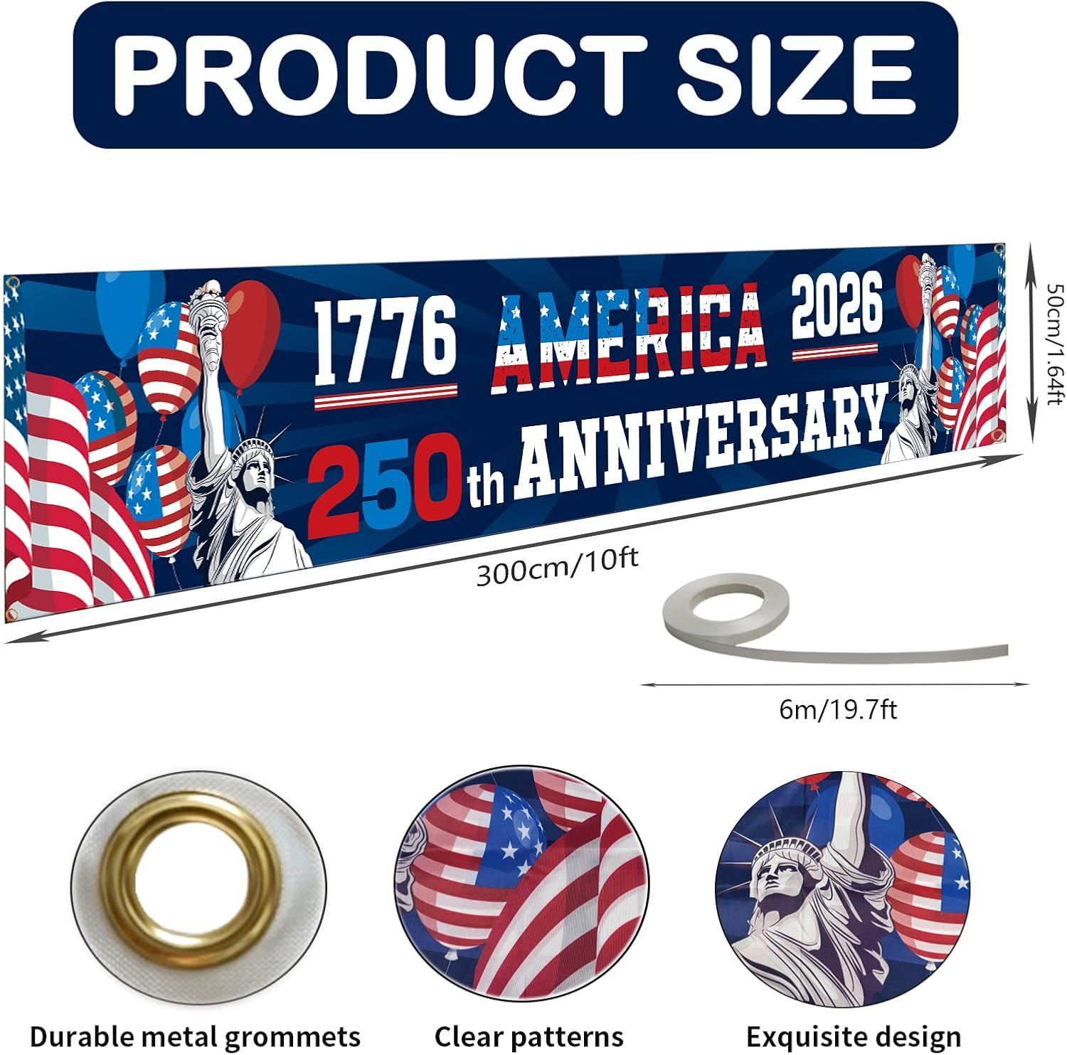250Th Anniversary American Banner Flag, 4Th of July Decorations,1776-2026 USA 25
