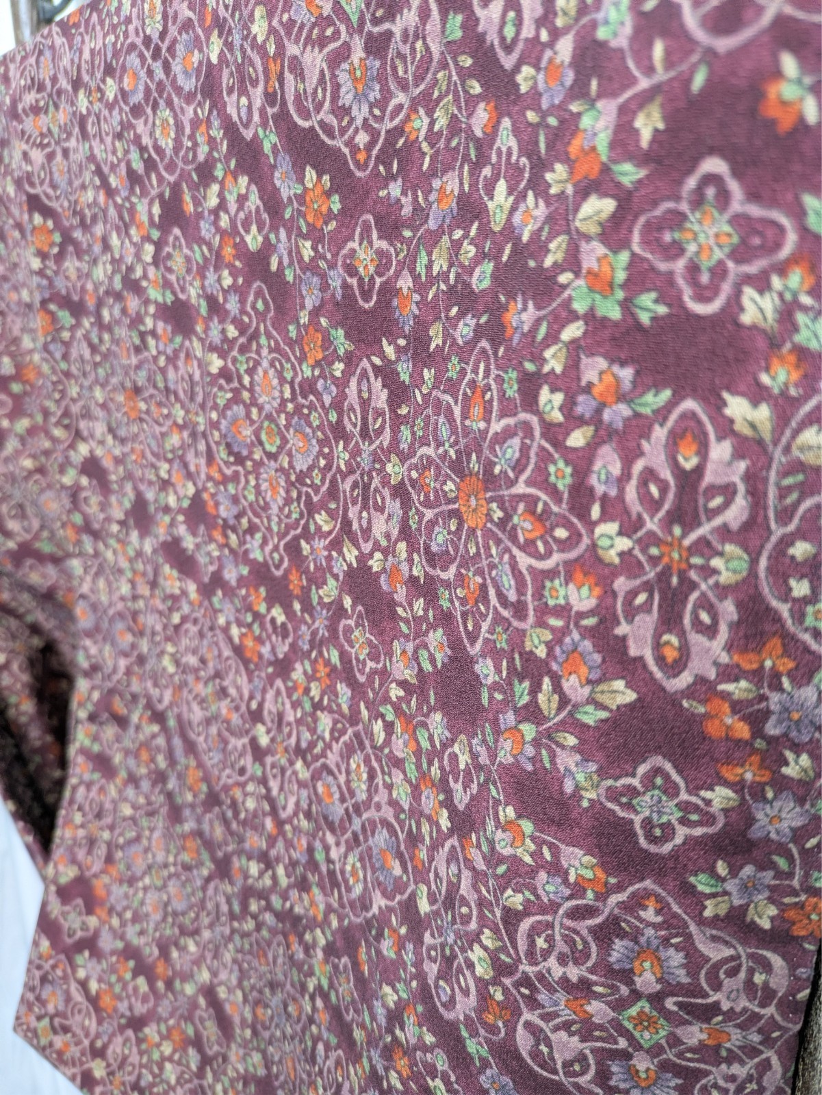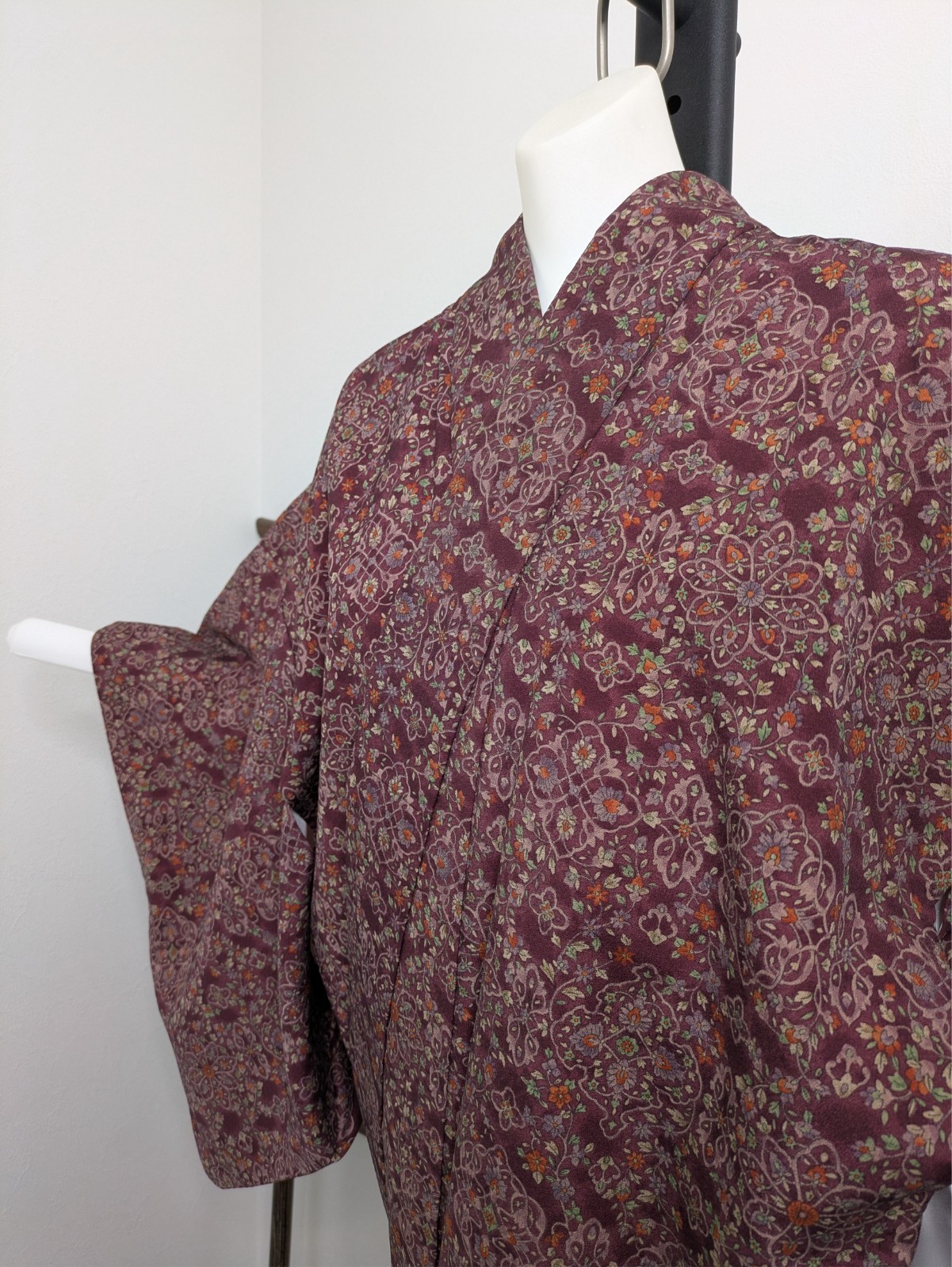 Japanese Washable Kimono M Wine Red Geometric Small Flowers Ready to Wear
