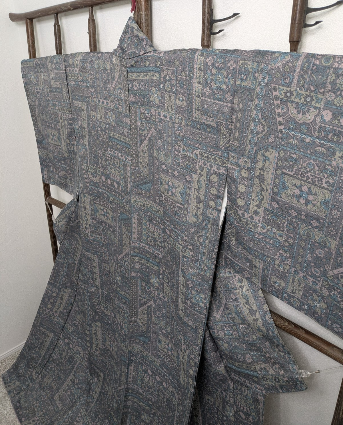 как выглядит Japanese Washable Kimono M Gray Blue Geometric Floral Ready to Wear фото