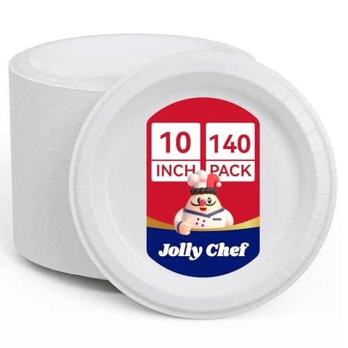 10 Heavy Duty Disposable Paper Plates - 140 Pack, Soak Proof, Cut Proof, Microw