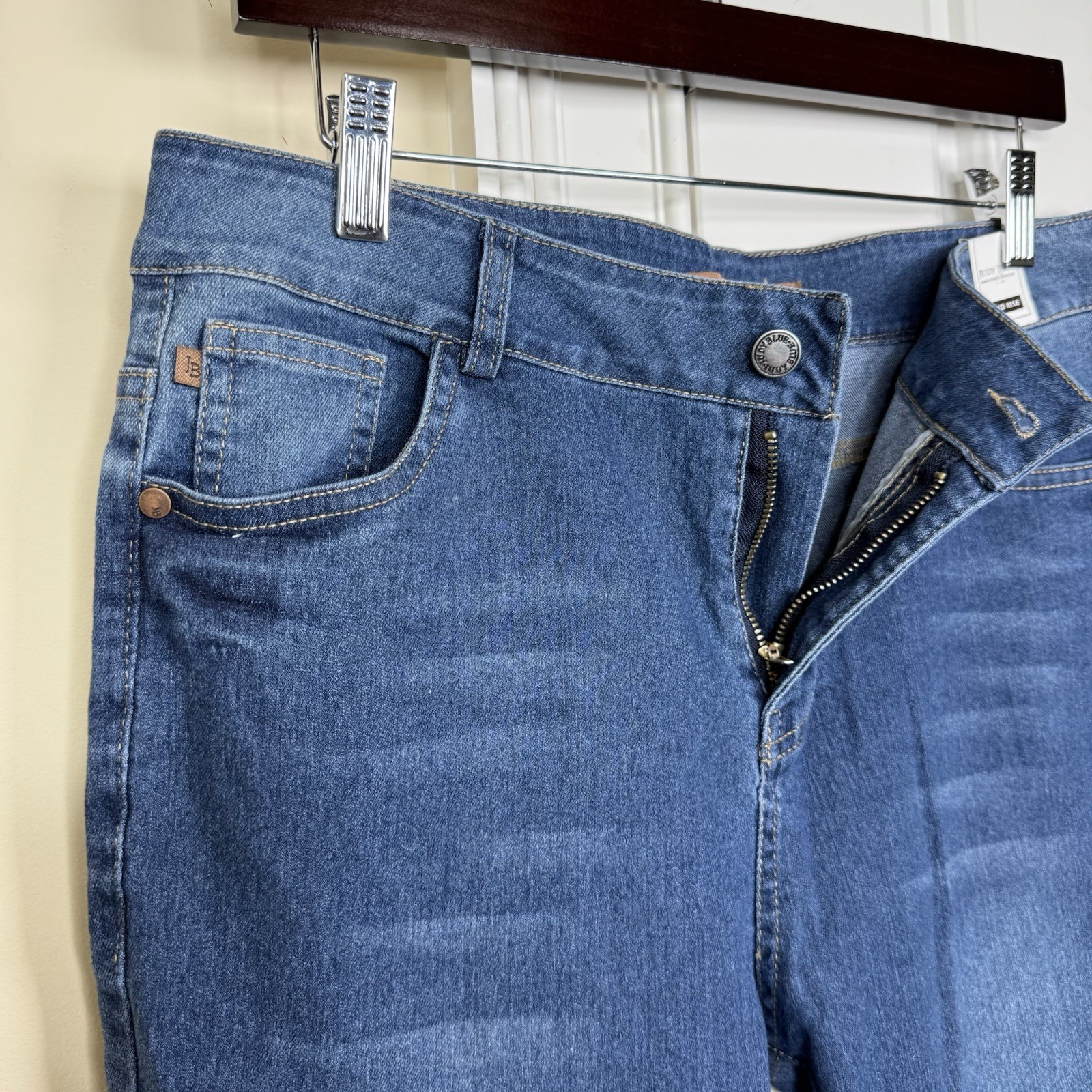 как выглядит Judy Blue Tapered Jeans Women s Medium Blue Mid Rise Stretch Denim Silver Button фото