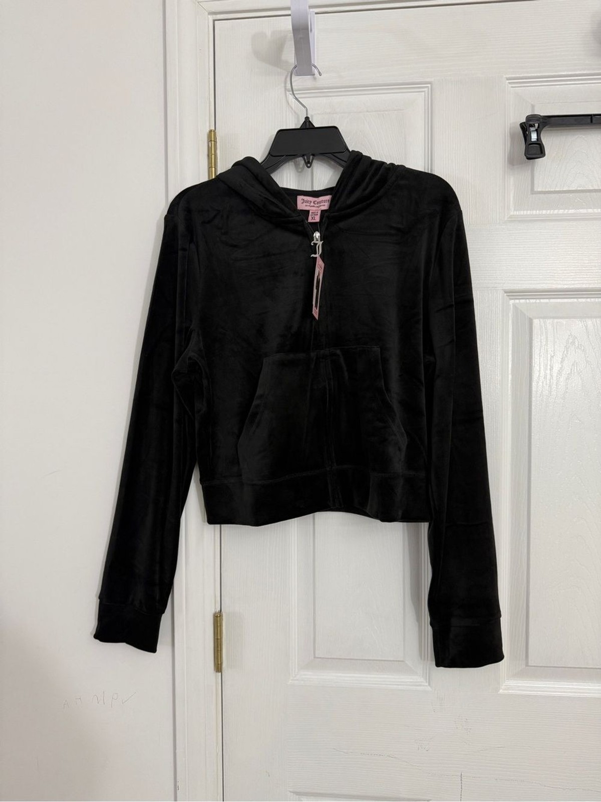Juicy Couture Black Cropped Bling Tracksuit Jacket Velour Hoodie NWT Size XL