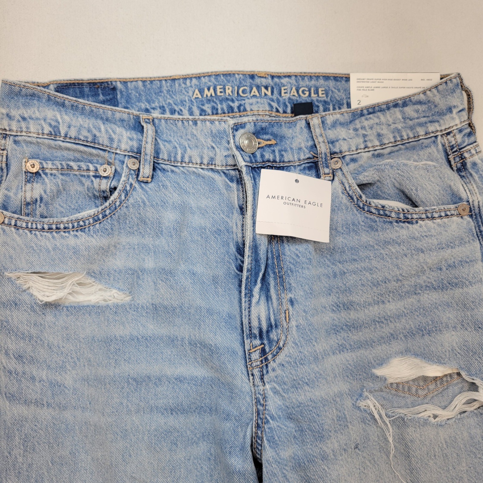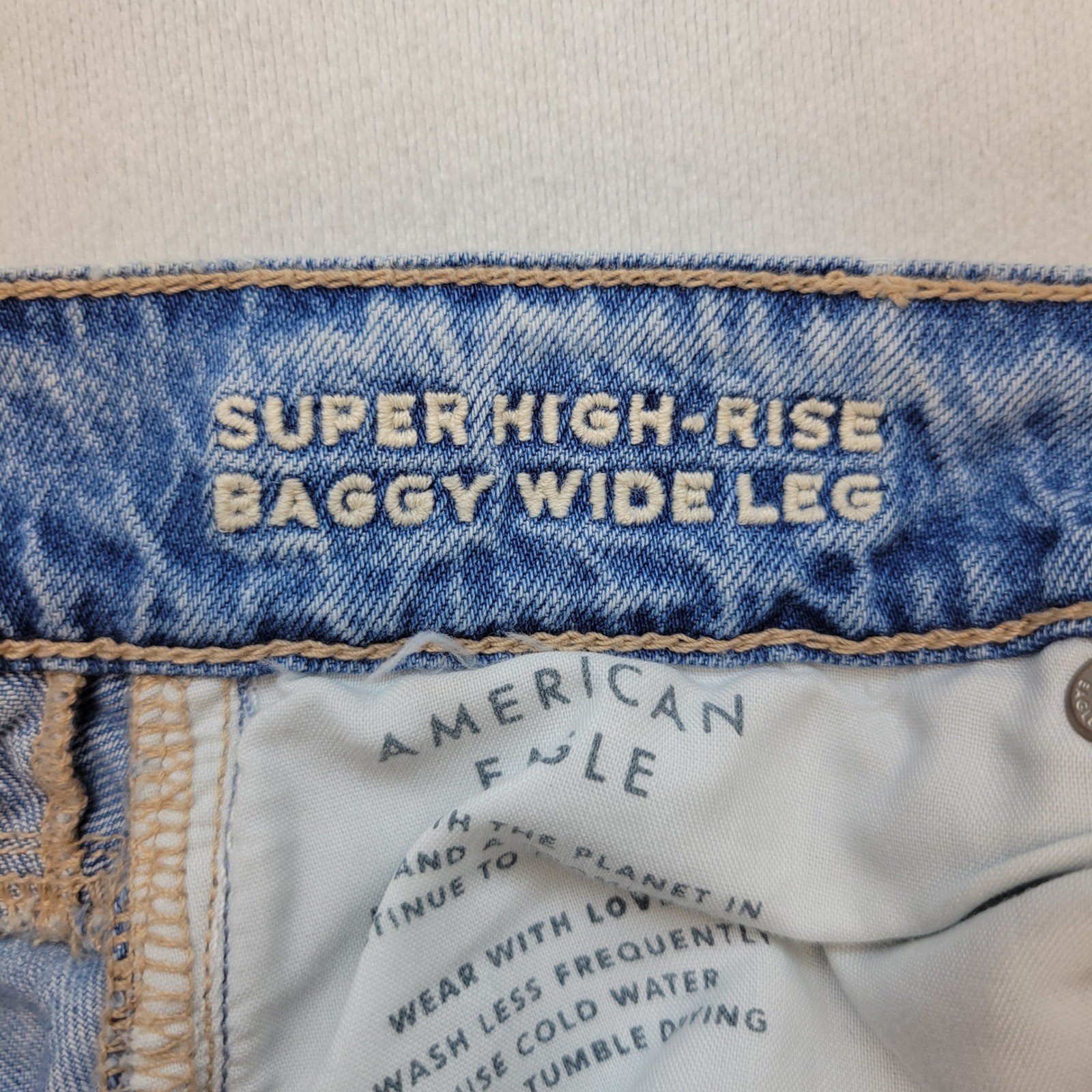 American Eagle Baggy Wide Leg Jeans Womens 2 Light Blue Dreamy Drape Distressed