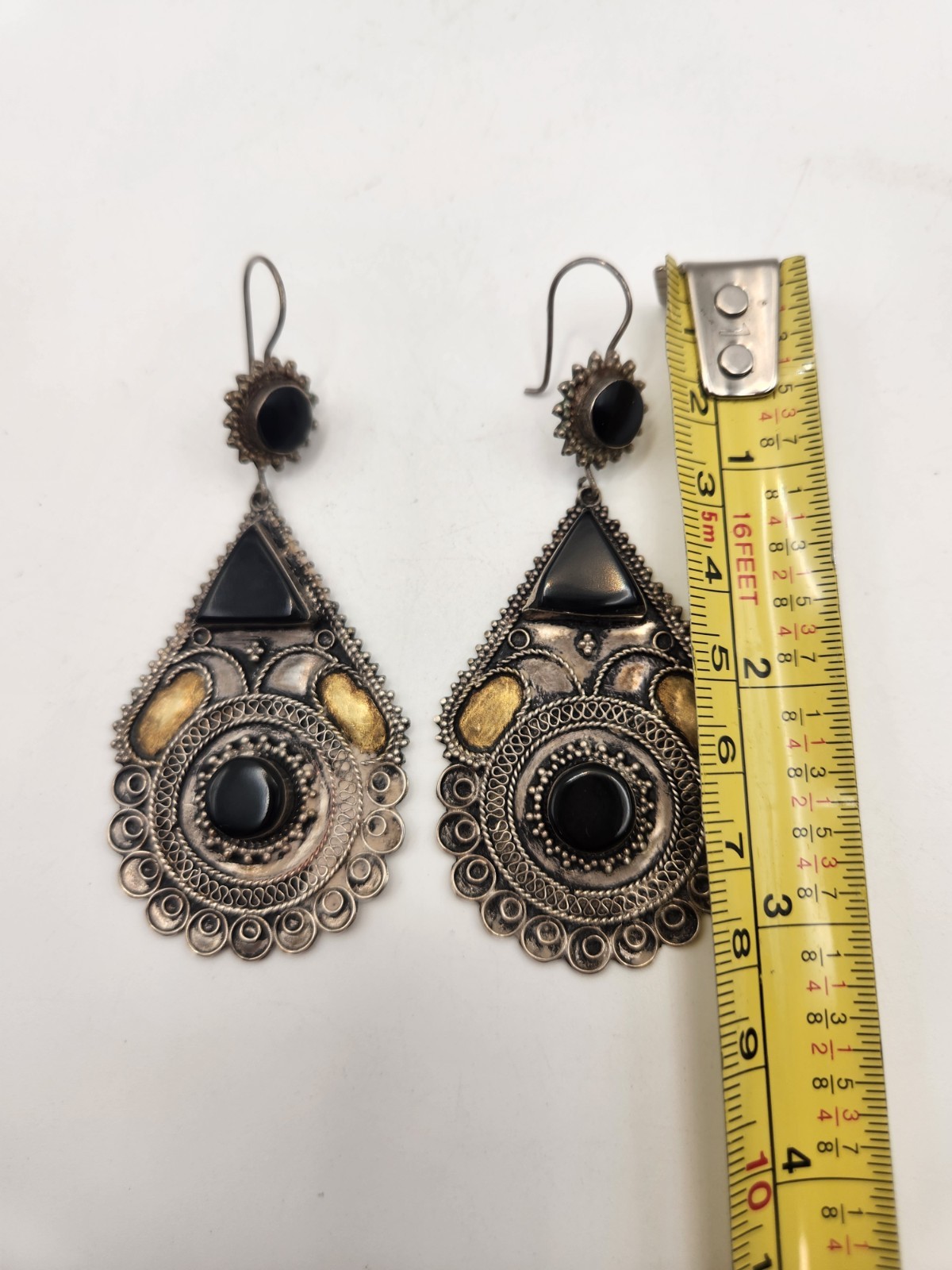 как выглядит Vintage Sterling Silver Black Onyx Stone Dangle/Drop Earrings фото