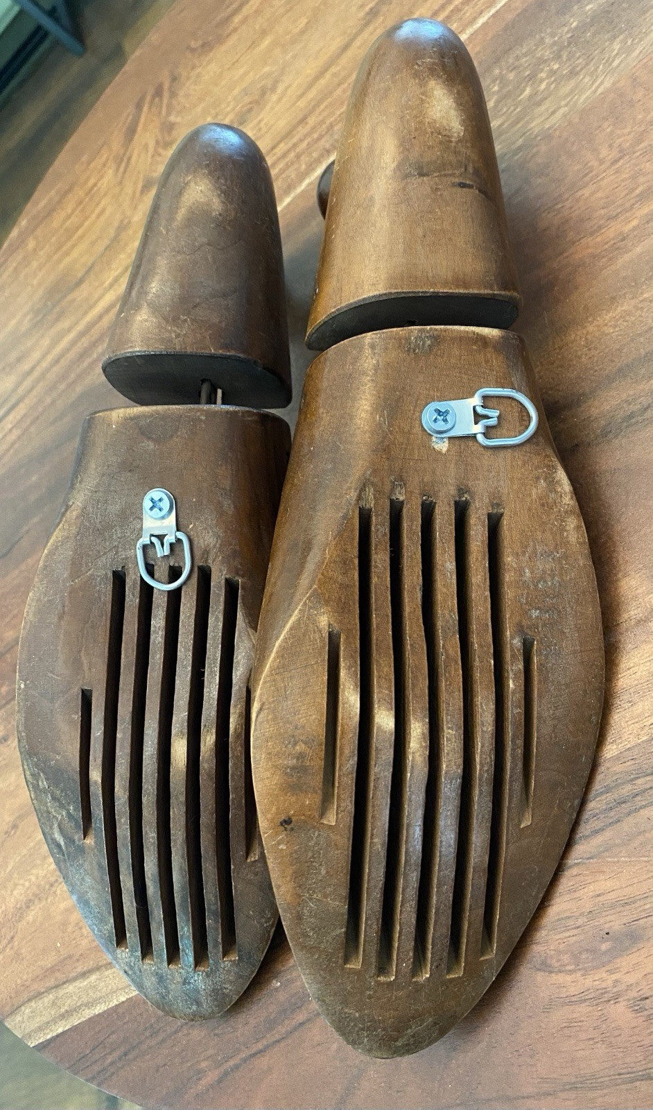 Vintage Wooden Adjustable Shoe Trees Pair Brown Marked 93 Size 9 3 MPN 93