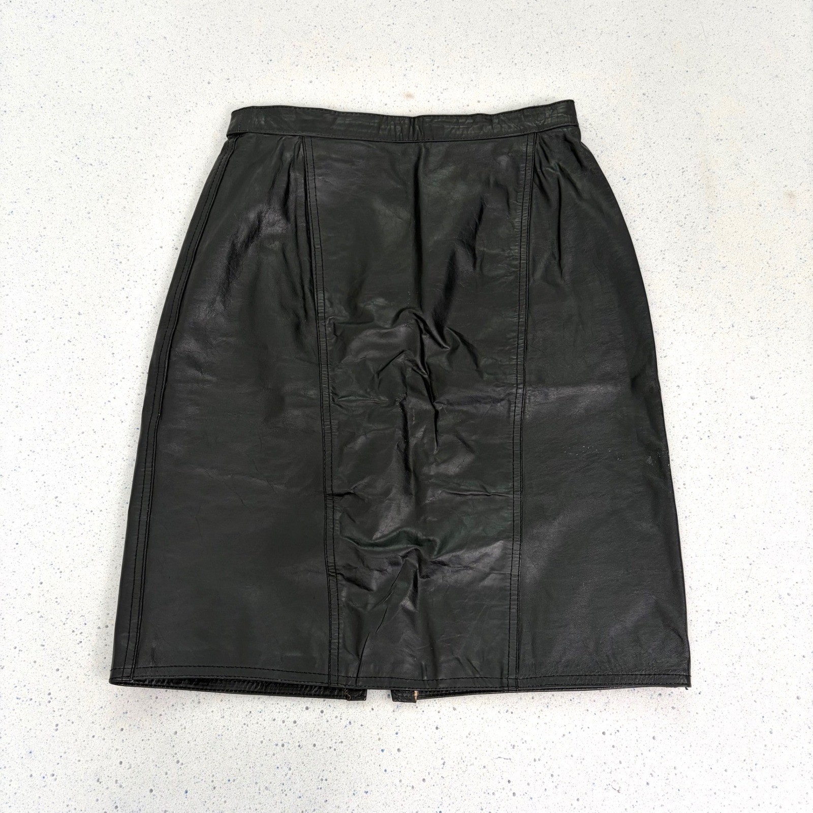 как выглядит Vintage David Benjamin Black Leather Midi Skirt High Waist Minimalist Grunge 12 фото