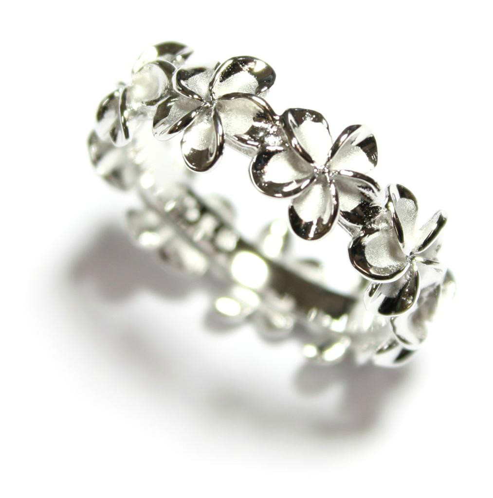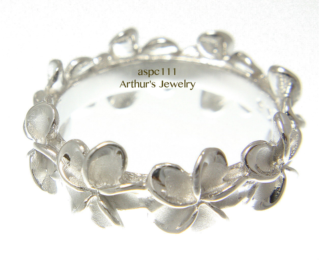 STERLING SILVER 925 HAWAIIAN PLUMERIA FLOWER LEI BAND RING RHODIUM SIZE 3 -10