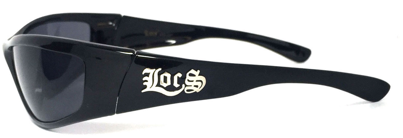 как выглядит Locs Mens Cholo UV400 Biker Sunglasses - Shiny Black LC53 фото