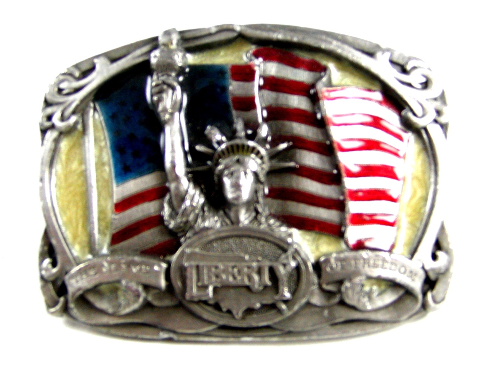 как выглядит 1985 The Flame of Freedom Statue of Liberty Brass Belt Buckle by Bergamont 62514 фото