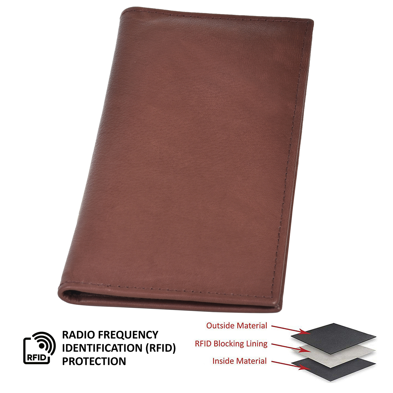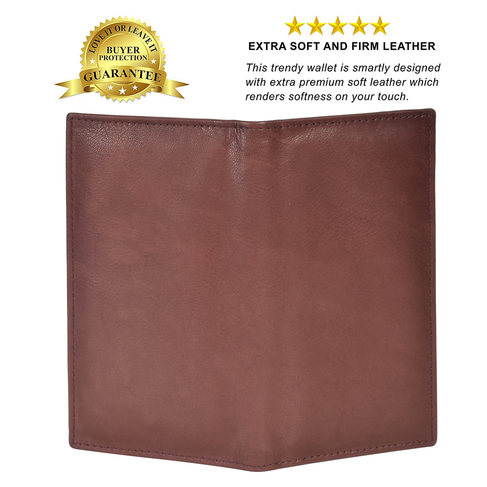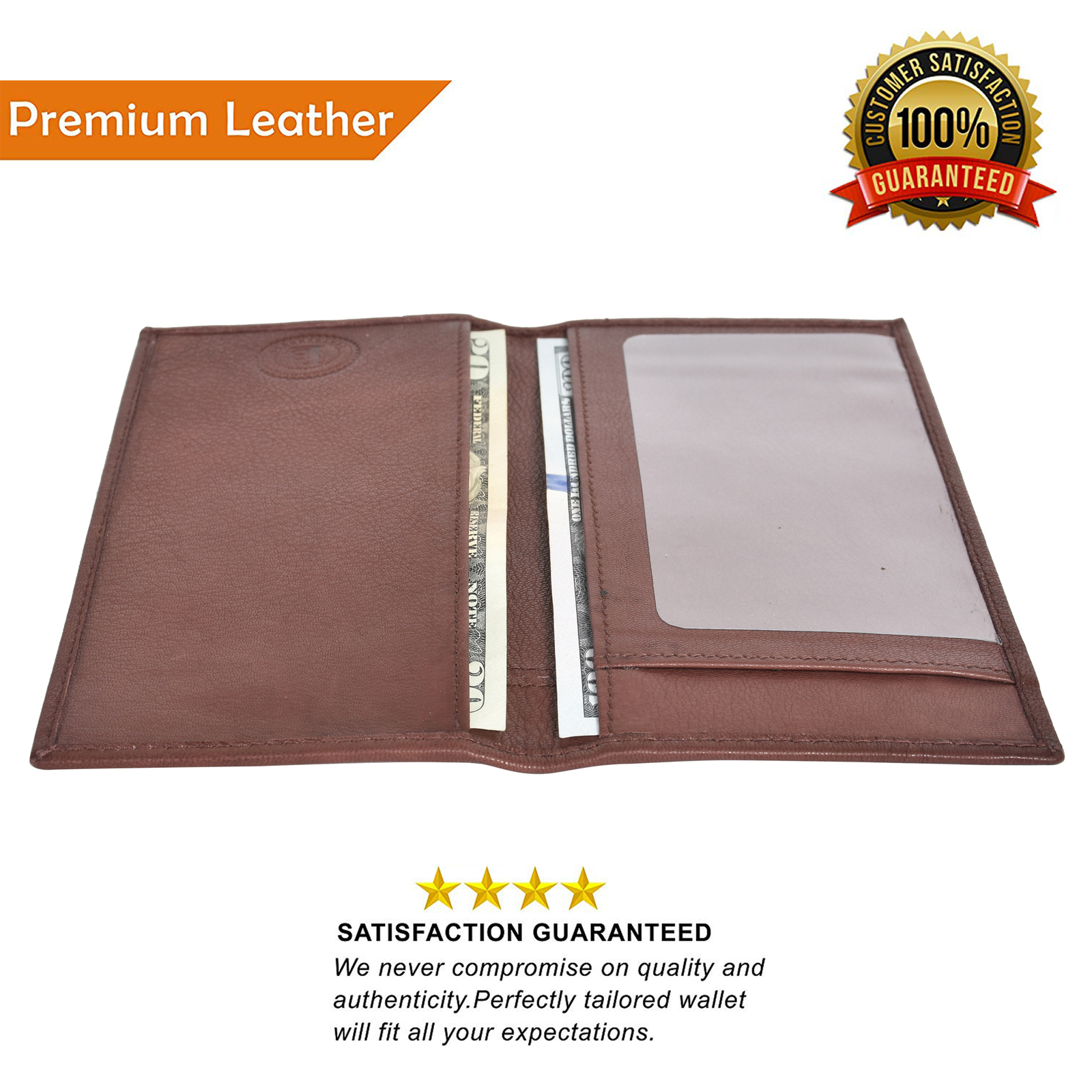 Leatherboss Genuine Leather PLAIN Checkbook Cover with ID Slot, Dark Brown