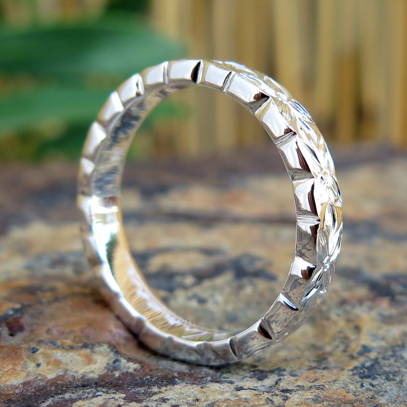 как выглядит Hawaiian Jewelry Sterling Silver Plumeria Wedding Ring Band 4mm ALR010003 фото